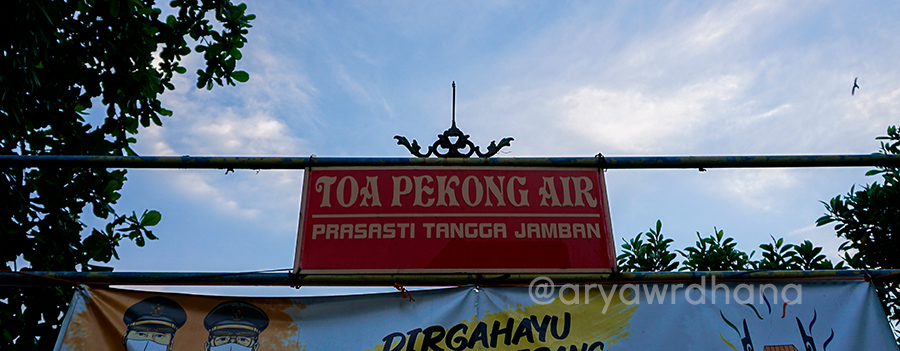 Menyusuri Sungai Cisadane, kita akan menemukan Toa Pekong Air atau Prasasti Tangga Jamban di pinggir sungai. Dulunya tempat ini dibangun pada tahun 1800-an untuk menautkan tali perahu saat warga dari luar benteng hendak beribadah ke Kelenteng Boen Tek Bio. Awalnya ada dua tangga di sini, yaitu Tangga Ronggeng dan Tangga Jamban. Penamaan “ronggeng” dikarena dulu banyak perempuan yang mandi telanjang di Cisadane, sehingga kemudian disebut Tangga Ronggeng. Namun ada pula yang mengatakan bahwa dulu ada rumah judi di tepi Kali Cisadane yang kerap mendatangkan ronggeng pada awal abad ke-20 dan mereka kerap mandi di tepi sungai, ini kemudian yang menjadikan nama tangga ronggeng. Sedangkan tangga satunya sering digunakan untuk buang air, sehingga dinamakan Tangga Jamban. Pembuatan dermaga ini diabadikan dalam sebuah prasasti, yang dikenal dengan Prasasti Tangga Jamban, yang ditulis dengan aksara Mandarin dan tertulis tahun pembuatannya yaitu tahun 1873.