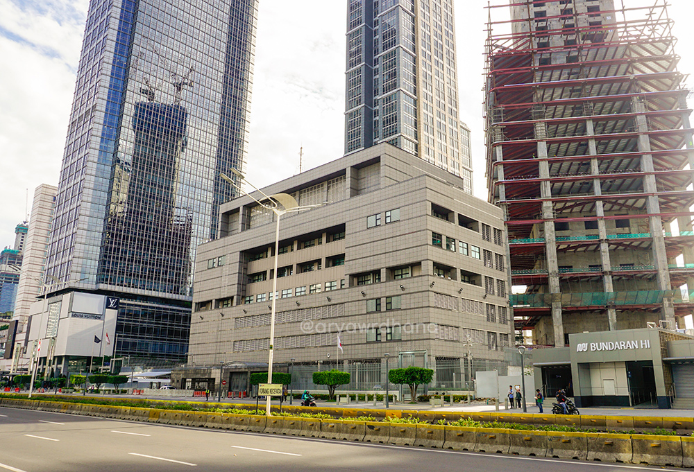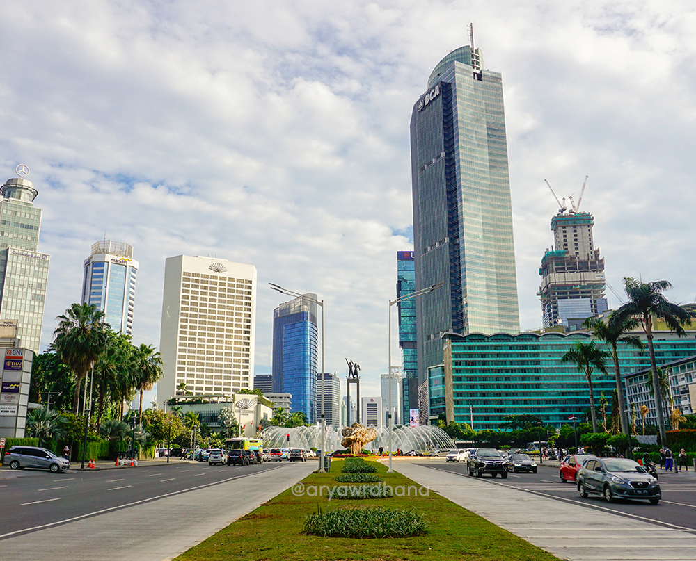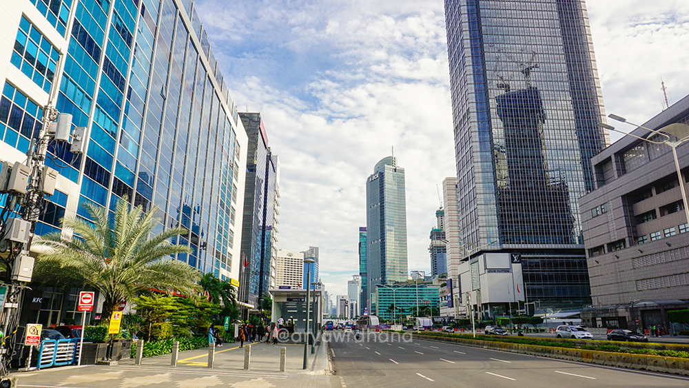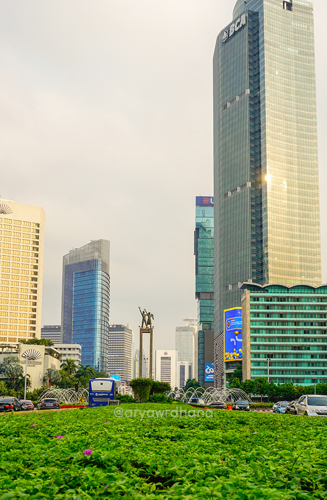 Gedung-gedung pencakar langit seringkali dikaitkan dengan gambaran kota metropolitan. Tak terkecuali Kota Jakarta yang memiliki sekitar 400 gedung bertingkat. Tingginya pun seakan berlomba-lomba menjadi yang “paling tinggi” di Jakarta, bahkan Indonesia. Salah satu kawasan yang paling banyak memiliki gedung tinggi adalah Jalan Thamrin dan Jalan Sudirman. Ketika Jakarta Good Guide mengadakan walking tour skyscrapers di kawasan ini, saya pun langsung tertarik. Bahkan saya sudah dua kali mengikuti tur ini, demi memuaskan rasa penasaran saya. Tulisan ini akan menggabungkan dua perjalanan berbeda waktu yang pernah ikuti bersama Jakarta Good Guide. Yuk, kita jalan!