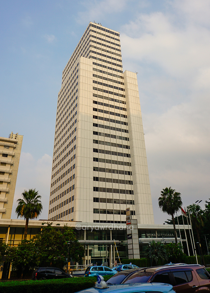 Tepat di sebelahnya berdiri Wisma Nusantara. Bangunan ini merupakan gedung pencakar langit pertama di Indonesia sekaligus di Asia Tenggara dengan ketinggian 117 meter. Tingginya bahkan mengalahkan bangunan termasyur saat itu, yakni Hotel Indonesia dan menyamai tinggi Monumen Nasional. Gedung ini dirancang oleh Kinoshita, Kajima, dan Taisei, yang diawasi oleh tokoh konstruksi kenamaan Indonesia, Wiratman Wangsadinata. Pembangunannya dilakukan oleh perusahaan asal Jepang, Mitsui Corporation. Bangunan Wisma Nusantara menerapkan teknologi tahan gempa dan merupakan prototipe gedung tahan-gempa generasi kedua bagi pencakar langit di Jepang. Baja berkualitas tinggi yang diimpor dari Jepang digunakan sebagai penyangga utama dari gedung.