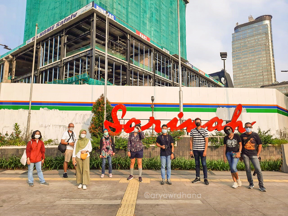 Pada tur yang pertama, saya dipandu oleh Mas Indra, sedangkan pada tur yang kedua saya dipandu oleh Huans. Kedua perjalanan dimulai dari Sarinah, yang disebut-sebut sebagai pusat perbelanjaan pertama di Jakarta dan Indonesia. Saat ini gedung ini sedang direnovasi, sehingga kami hanya berdiri di luar halamannya. Sarinah sendiri merupakan gagasan dari Presiden Soekarno untuk mewadahi perdagangan produk dalam negeri dan mendorong pertumbuhan perekonomian Indonesia. Sarinah sendiri didirikan pada 17 Agustus 1962 dan namanya diambil dari nama salah satu pengasuh Presiden Soekarno di masa kecil. Pemberian nama ini dikarenakan Soekarno memiliki kesan yang mendalam terhadap sang pengasuh. Sarinah digambarkan sebagai sosok yang memiliki kecintaan pada rakyat kecil.