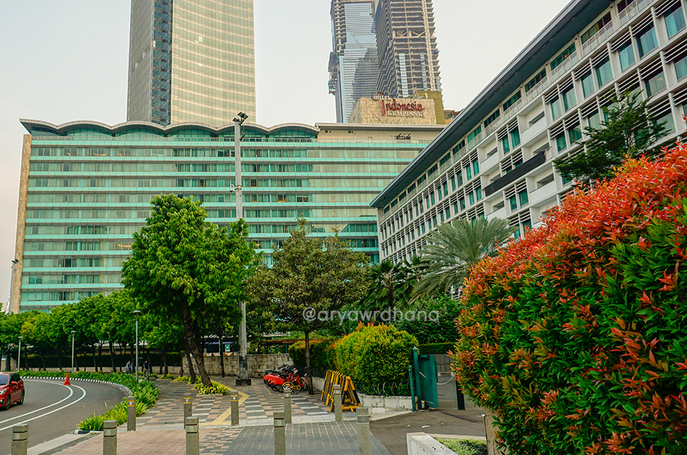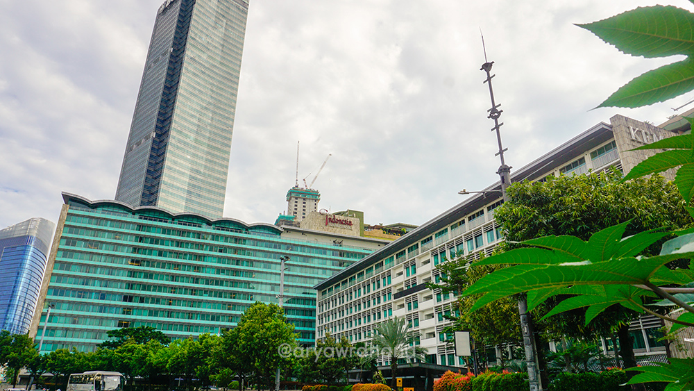 Kalau tadi kita membahas tentang bundarannya, sekarang kita menuju ke Hotel Indonesia Kempinski. Hotel ini merupakan gagasan Presiden Soekarno untuk menyambut Asian Games 1962. Kala itu dia menggagas pembangunan stadion, tugu, dan hotel. Meski pembangunannya menjadi kontroversi, karena Indonesia belum lama merdeka dan keuangan negara masih belum baik. Pembangunan stadion, tugu dan hotel dianggap sebagai pemborosan. Namun ini menjadi proyek mercusuar Soekarno untuk mencuri perhatian dunia dengan bangunan-bangunan megah.