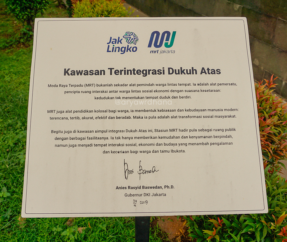 Pemberhentian terakhir kita kali ini di Transit Oriented Development (TOD) atau Kawasan Berorientasi Transit Dukuh Atas. Lokasi ini merupakan sebuah pengembangan berorientasi transit yang meliputi Stasiun Dukuh Atas BNI dari MRT Jakarta, Stasiun Sudirman dari KRL Commuterline, Stasiun BNI City dari Kereta Ekspres Bandara Internasional Soekarno-Hatta, dan halte bus Transjakarta, serta ke depannya juga kan ditambah dengan stasiun LRT Jakarta dan LRT Jabodebek.