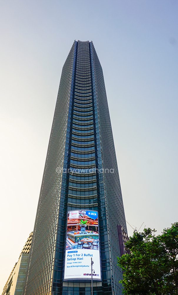 Meski jaraknya belum terlalu jauh, ternyata cerita tentang gedung-gedung pencakar langit di jalan utama ibukota ini belum habis. Kini kita lanjutkan di seberang Wisma Nusantara. Sampailah kita di depan pusat perbelanjaan super mewah, yang mampu bertahan dari masa ke masa, Plaza Indonesia. Didirikan oleh empat serangkai, Bambang Trihatmodjo, Peter Sondakh, Ferry Teguh Santosa, dan Eka Tjipta Widjaja. Mereka memiliki visi untuk membangun pusat perbelanjaan mewah yang berisikan merek-merek internasional. Bangunannya sendiri dibangun di atas bekas hotel peninggalan Asian Games 1962, yaitu Hotel Asoka dan dirancang oleh arsitek kenamaan internasional Hellmuth, Obata & Kassabaum dari Amerika Serikat.