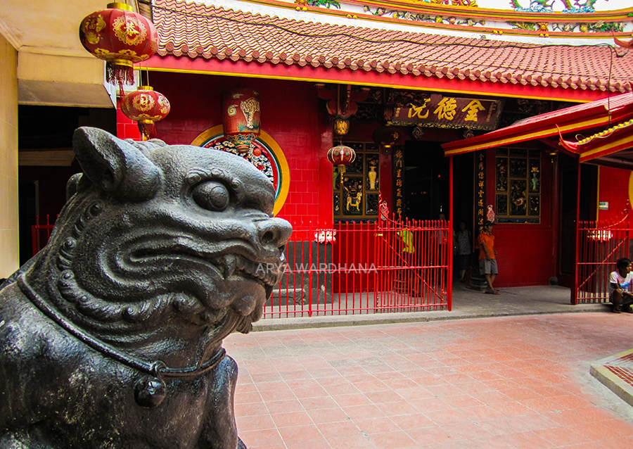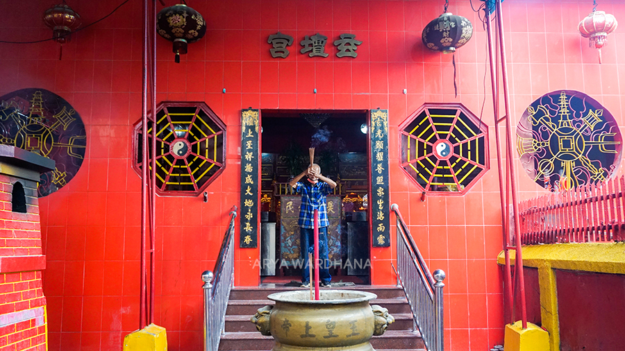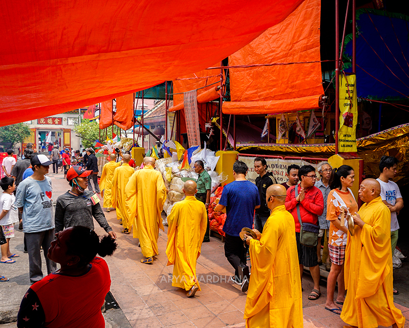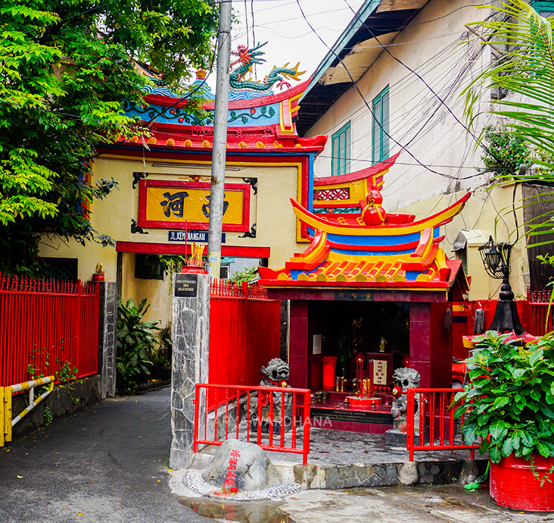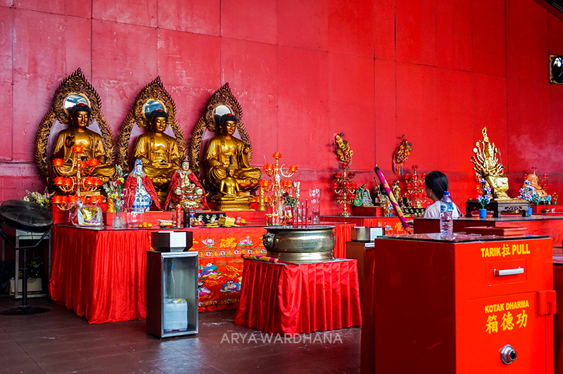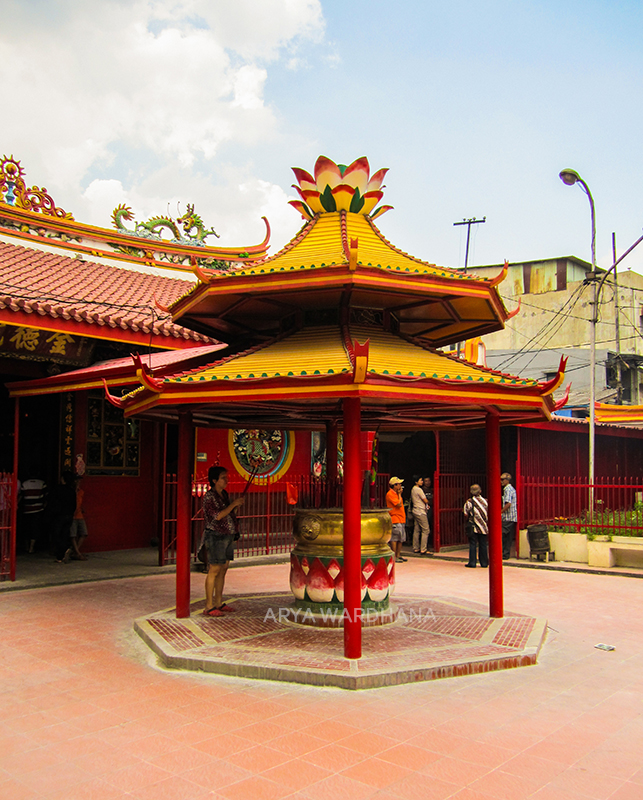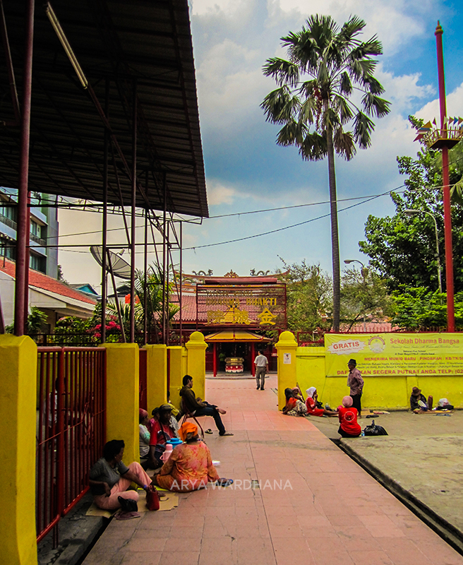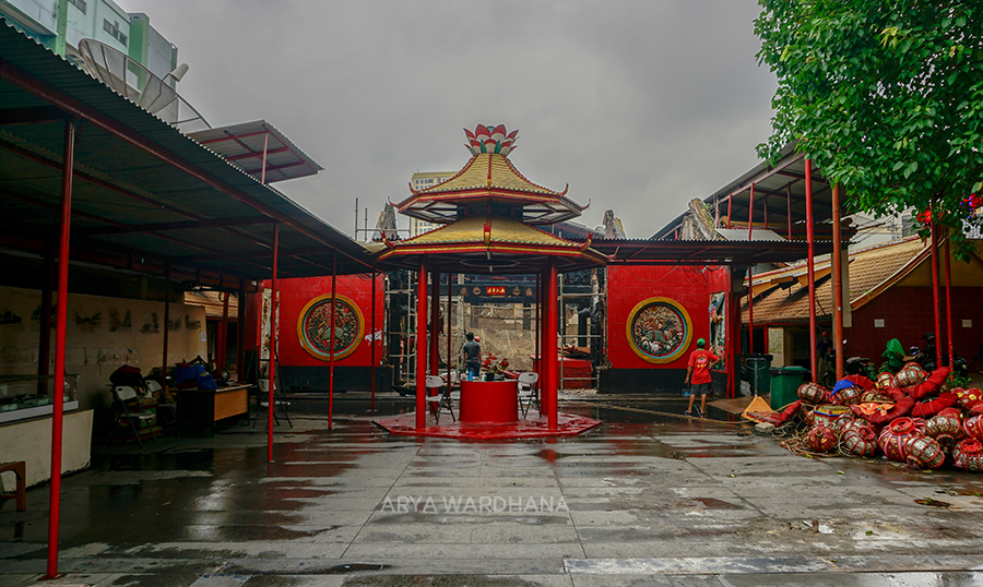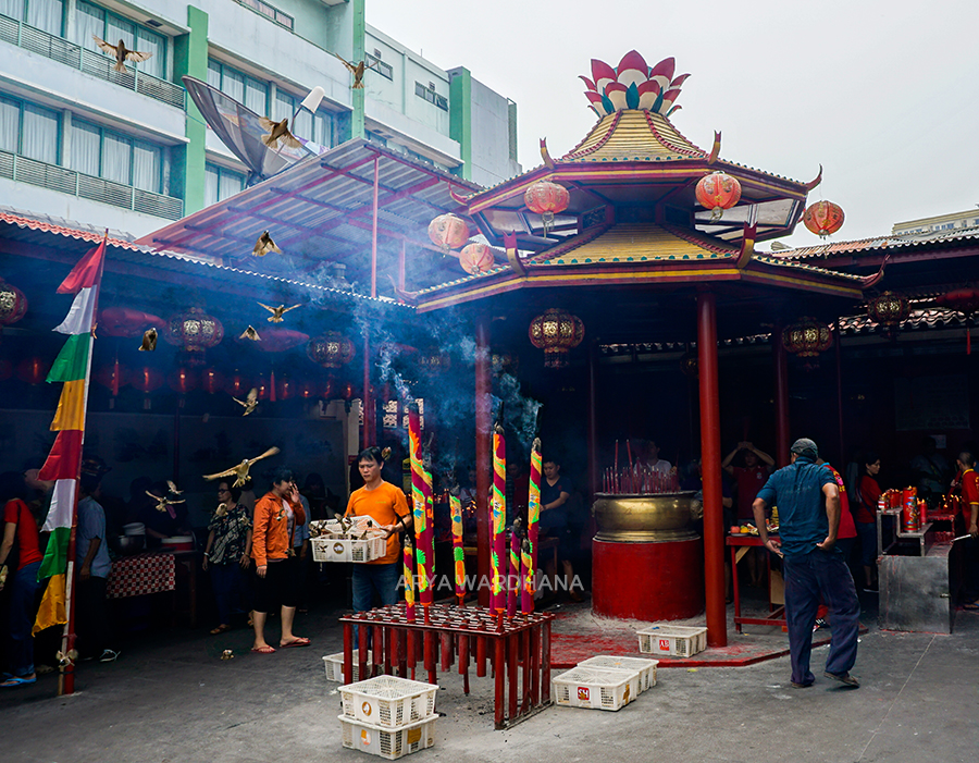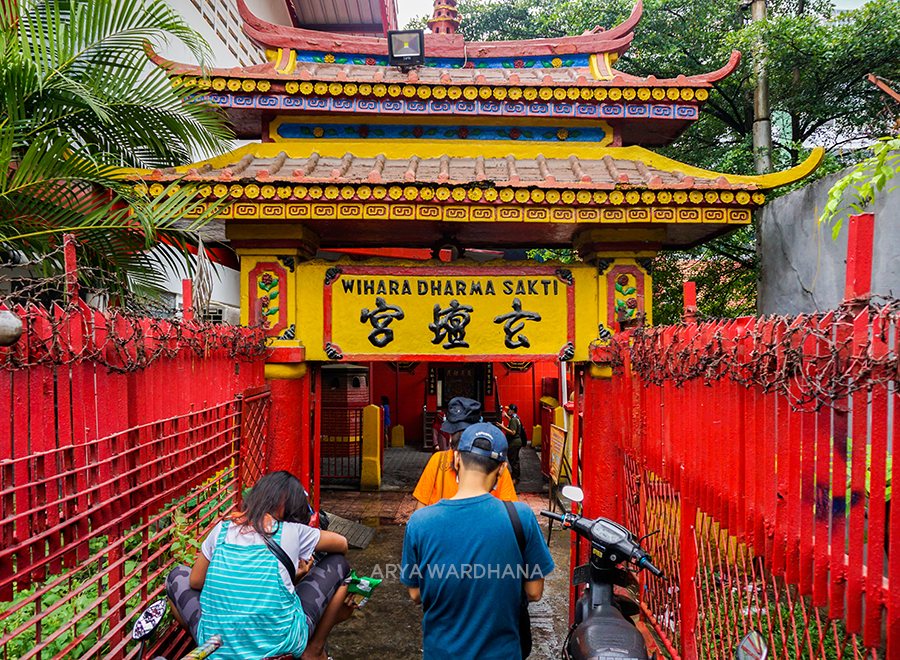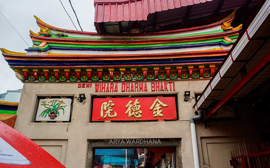Perjalanan mengelilingi Pecinan Glodok masih belum usai. Kalau bagian pertama kita sampai di Petak Sembilan, kini kita memasuki kawasan yang paling legendaris di Glodok, yaitu Wihara Dharma Bakti. Bangunan yang juga dikenal dengan Kelenteng Kim Tek Ie atau Jin De Yuan ini merupakan salah satu kelenteng tertua di Jakarta. Sebelum Perang Dunia II, kelenteng ini juga merupakan salah satu dari empat kelenteng besar yang berada di bawah pengelolaan Kong Koan atau Dewan Tionghoa, selain Kelenteng Kuan Im Tong (Goenoeng Sari), Kelenteng Toa Peh Kong (Ancol), dan Kelenteng Hian Thian Shang Te Bio di Tanah Tandjoeng. Dibangun pada tahun 1650 oleh Letnan Tionghoa bernama Kwee Hoen di sebelah barat daya kota dan dinamakan Kwan lm Teng atau Guo Xun Guan untuk untuk menghormati Dewi Guan Yin. Sebelum menjadi kelenteng, bangunan ini adalah rumah sang kapitan. Kata Kwan Im Teng sendiri kemudian diserap ke dalam Bahasa Indonesia menjadi kelenteng.