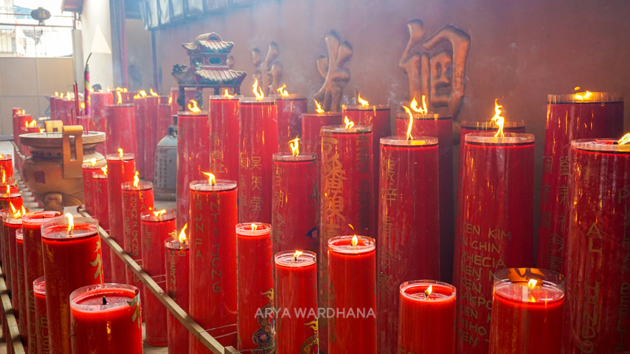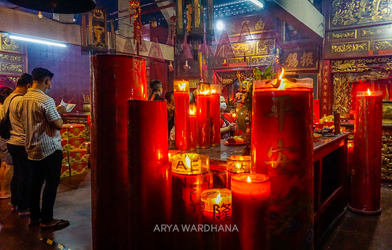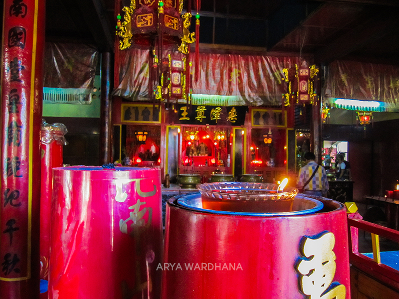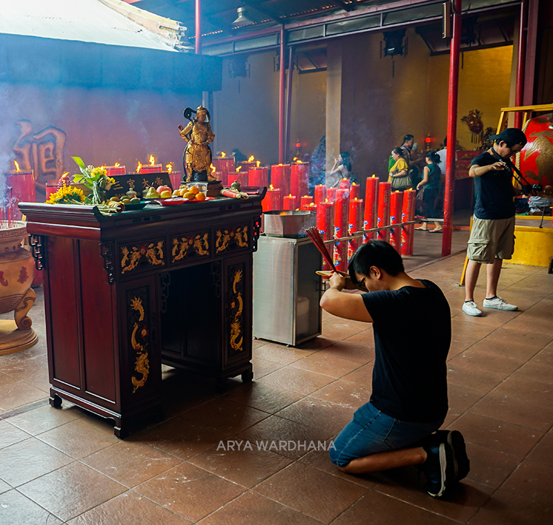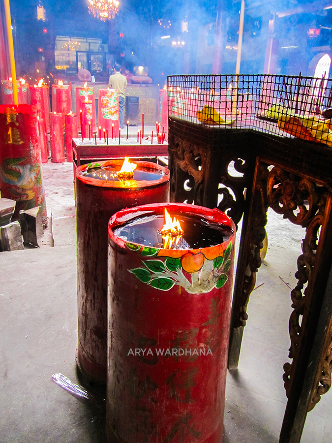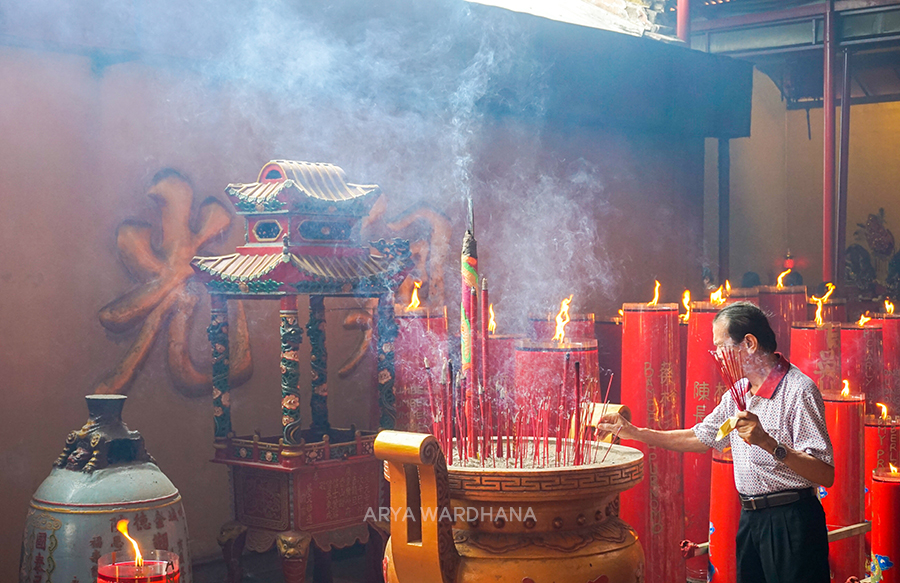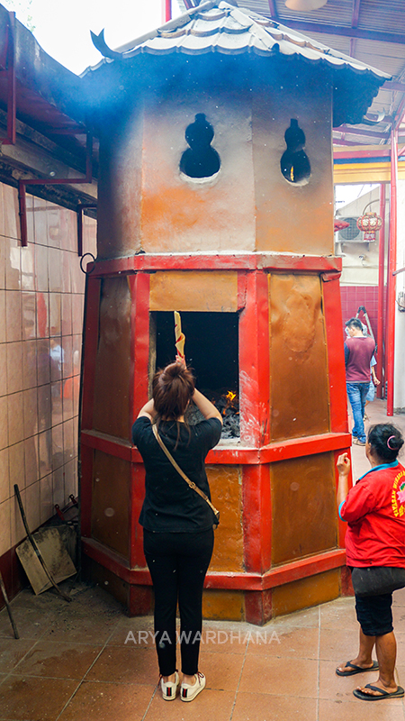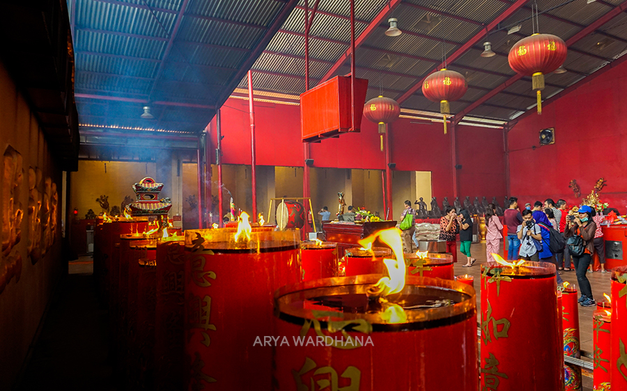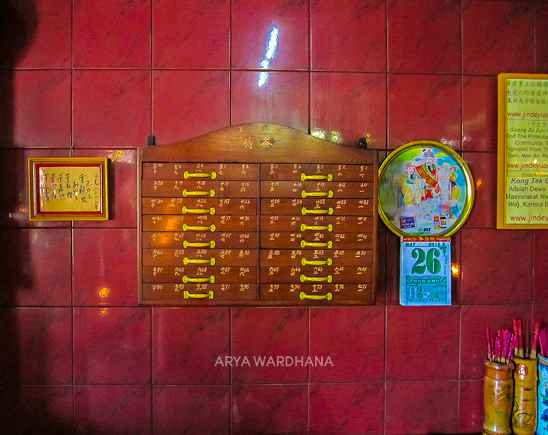 Oya, di sini kita juga bisa mencoba peruntungan kita dengan menggunakan metode ramalan kuno khas budaya Tionghoa. Namanya adalah ciamsi. Nah, ciam sendiri artinya adalah batang bambu yang digunakan untuk meramal. Sedangkan kiu ciam adalah ‘memohon ciam’ dan ciamsi adalah kertas hasil kiu ciam yang isinya berupa syair-syair. Ciamsi menggunakan batang bambu yang diletakkan pada wadah gelas yang terbuat dari bambu. Pada batang bambu diberi nomor peruntungan yang berpeluang menjadi “ramalan nasib” selama setahun ke depan. Jumlah batang bambu bisa 60 atau 100. Caranya kocok batang bambu sampai terlontar satu batang bambu yang bertuliskan nomor. Jangan lupa untuk menyebutkan nama, tanggal lahir, alamat tinggal dan permintaan yang diinginkan saat mengocok ciamsi.