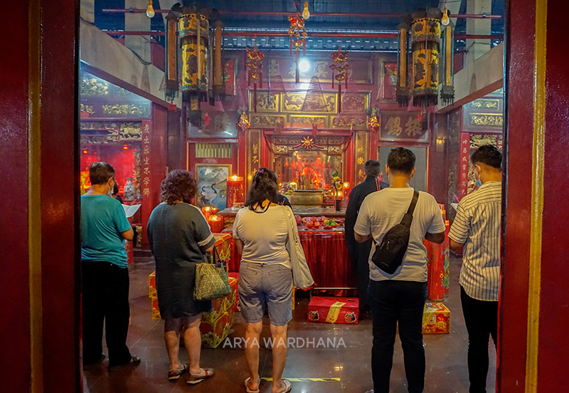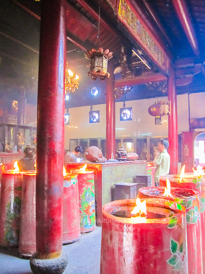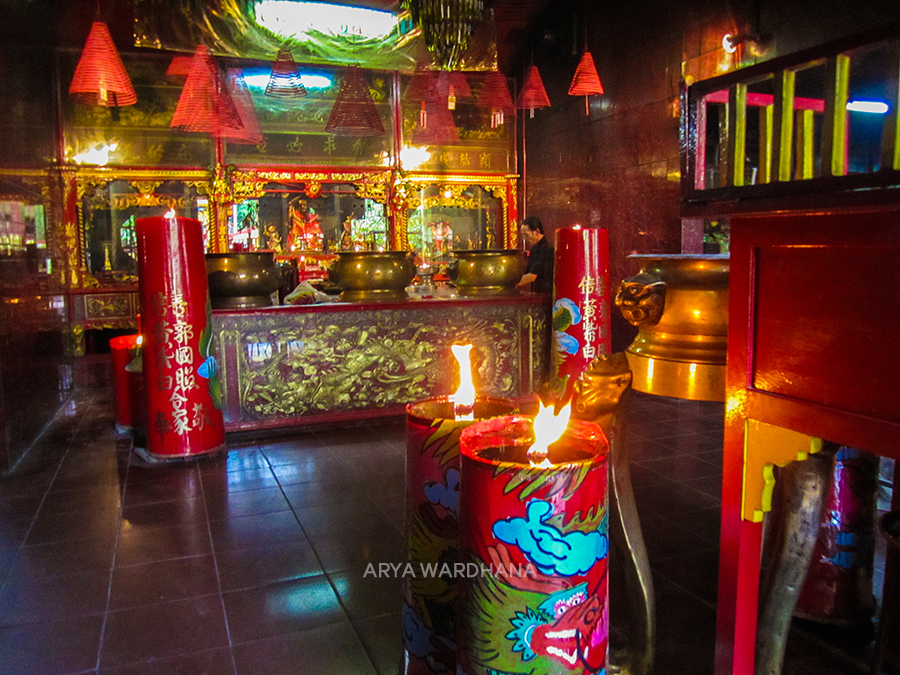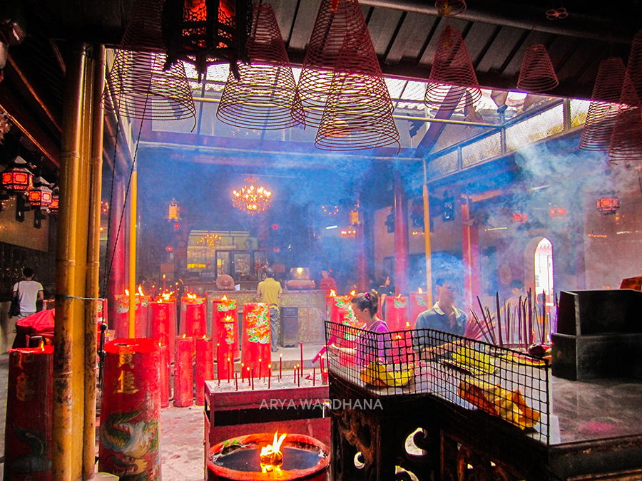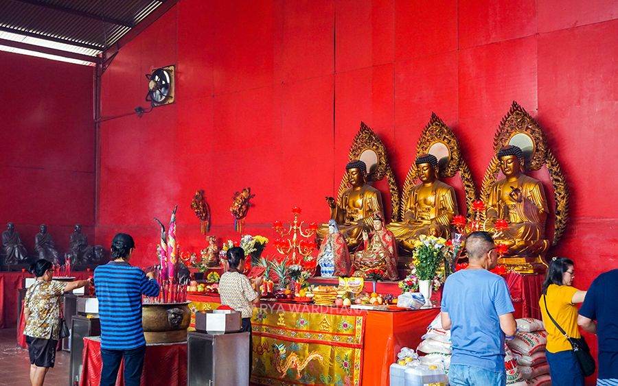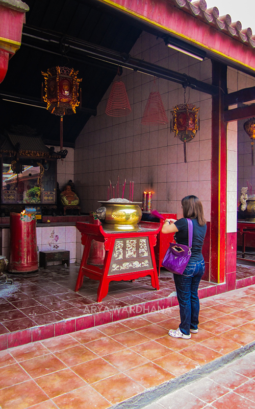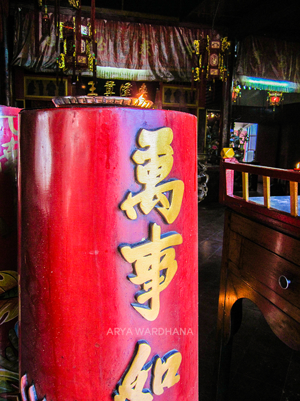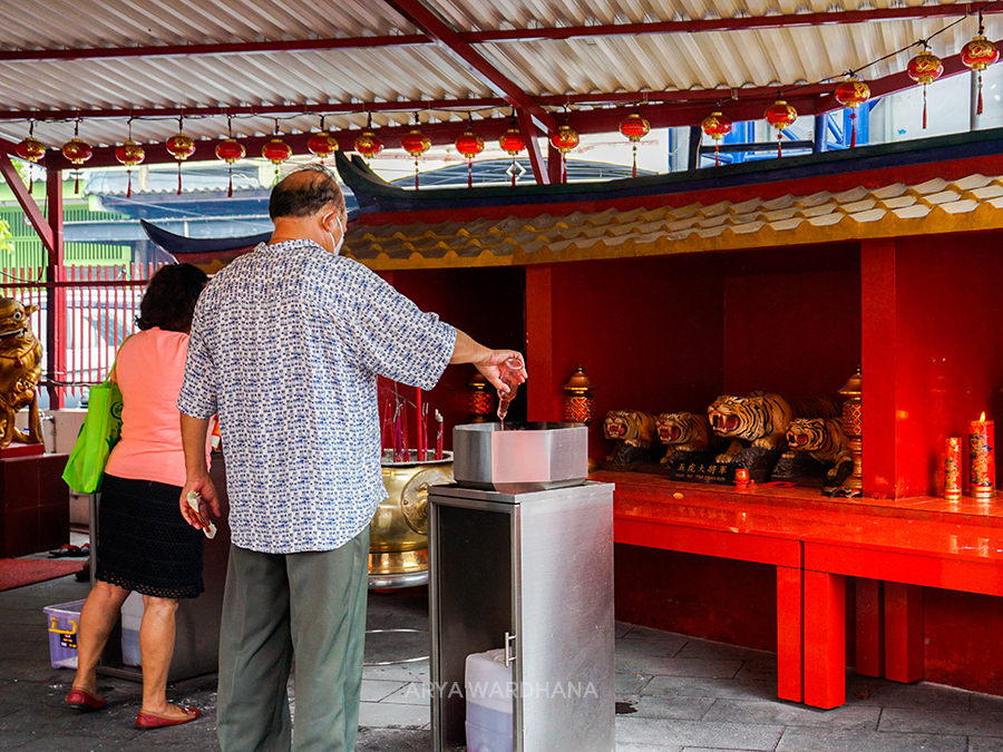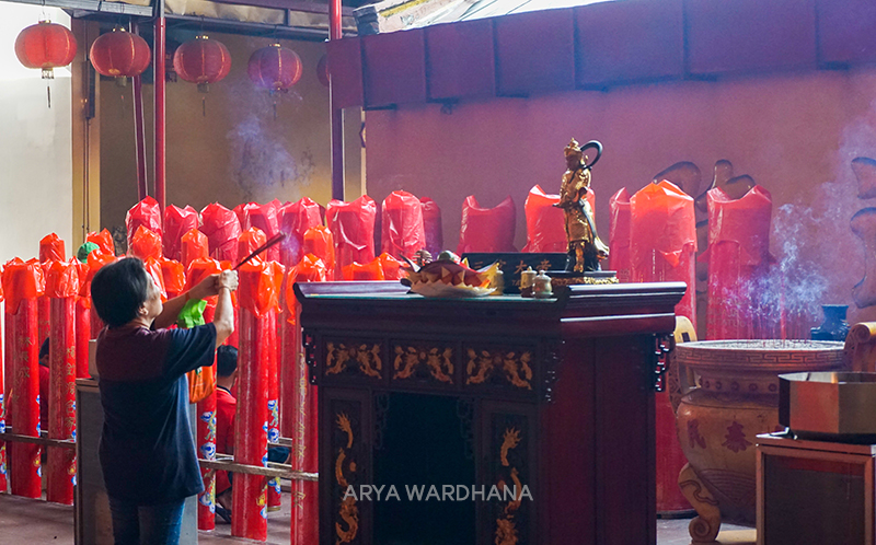 Oya, di sini kita juga bisa mencoba peruntungan kita dengan menggunakan metode ramalan kuno khas budaya Tionghoa. Namanya adalah ciamsi. Nah, ciam sendiri artinya adalah batang bambu yang digunakan untuk meramal. Sedangkan kiu ciam adalah ‘memohon ciam’ dan ciamsi adalah kertas hasil kiu ciam yang isinya berupa syair-syair. Ciamsi menggunakan batang bambu yang diletakkan pada wadah gelas yang terbuat dari bambu. Pada batang bambu diberi nomor peruntungan yang berpeluang menjadi “ramalan nasib” selama setahun ke depan. Jumlah batang bambu bisa 60 atau 100. Caranya kocok batang bambu sampai terlontar satu batang bambu yang bertuliskan nomor. Jangan lupa untuk menyebutkan nama, tanggal lahir, alamat tinggal dan permintaan yang diinginkan saat mengocok ciamsi.