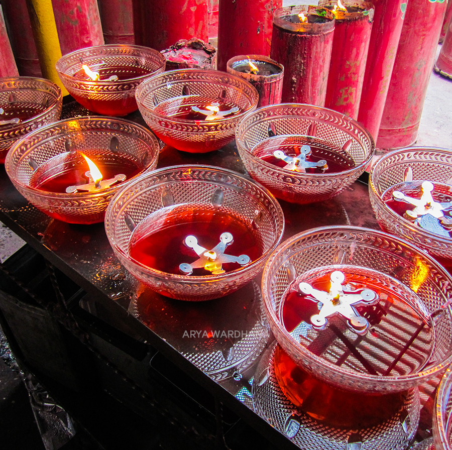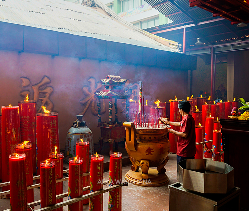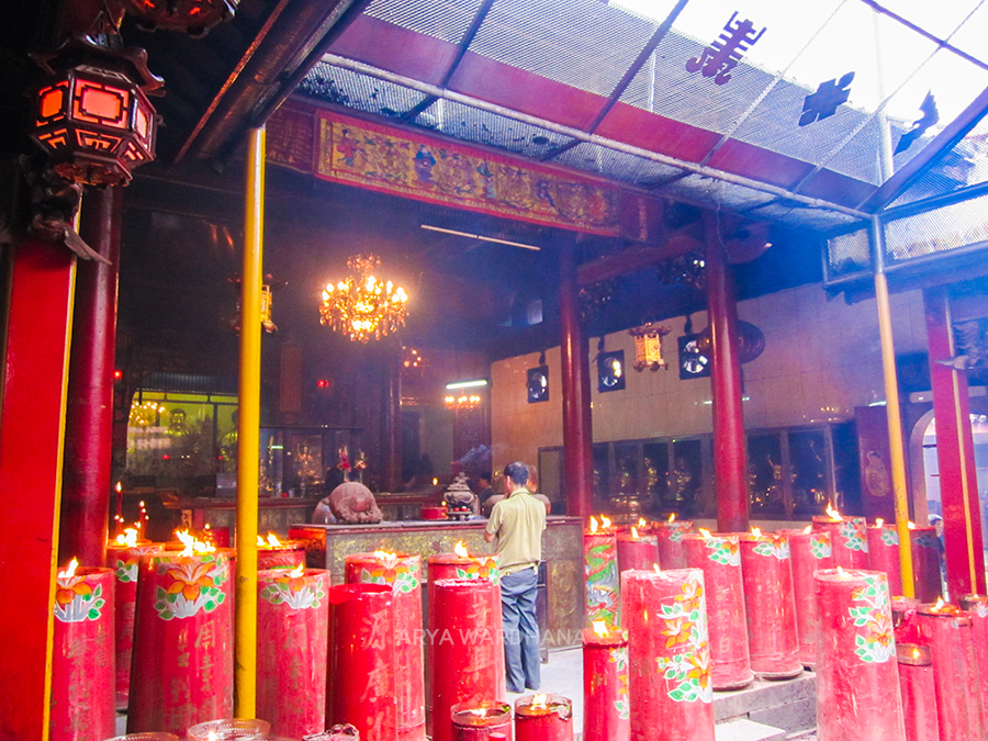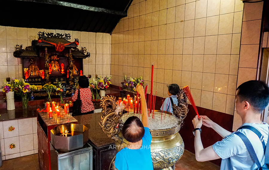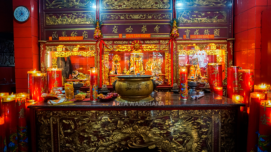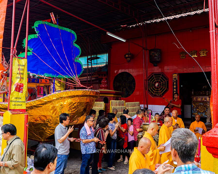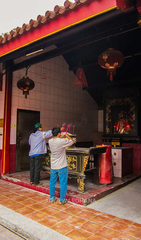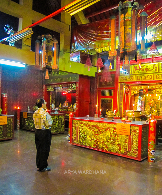 Oya, di sini kita juga bisa mencoba peruntungan kita dengan menggunakan metode ramalan kuno khas budaya Tionghoa. Namanya adalah ciamsi. Nah, ciam sendiri artinya adalah batang bambu yang digunakan untuk meramal. Sedangkan kiu ciam adalah ‘memohon ciam’ dan ciamsi adalah kertas hasil kiu ciam yang isinya berupa syair-syair. Ciamsi menggunakan batang bambu yang diletakkan pada wadah gelas yang terbuat dari bambu. Pada batang bambu diberi nomor peruntungan yang berpeluang menjadi “ramalan nasib” selama setahun ke depan. Jumlah batang bambu bisa 60 atau 100. Caranya kocok batang bambu sampai terlontar satu batang bambu yang bertuliskan nomor. Jangan lupa untuk menyebutkan nama, tanggal lahir, alamat tinggal dan permintaan yang diinginkan saat mengocok ciamsi.
