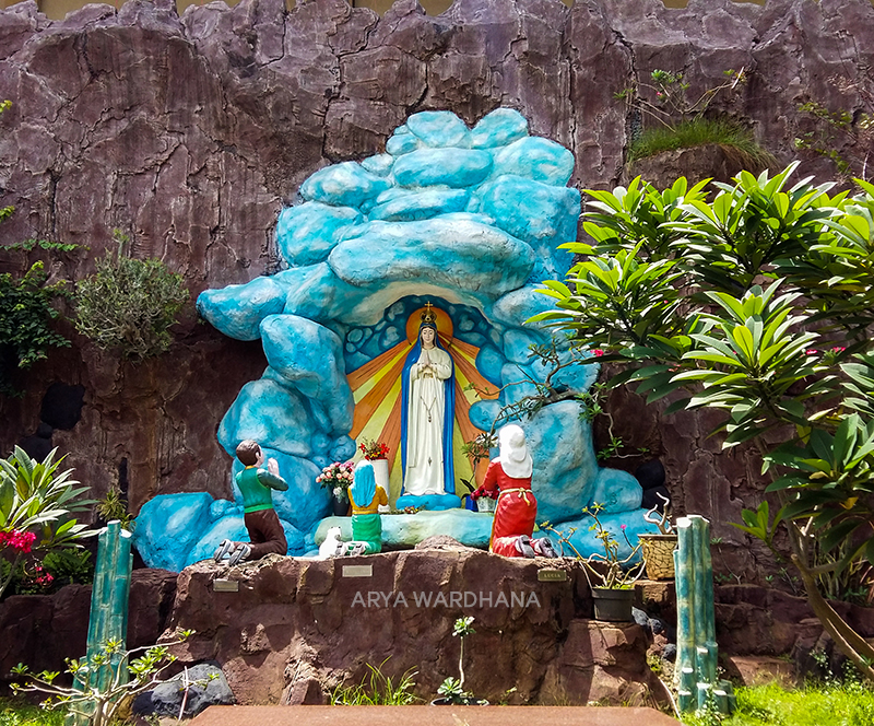 Pada tahun 1954, perayaan ekaristi pertama dilaksanakan di dalam gereja dengan dihadiri oleh 16 orang. Gereja diakui secara resmi sebagai paroki pada 13 Oktober 1955. Pengambilan nama Santa Maria de Fatima sebagai nama paroki adalah untuk mengenang peristiwa penampakan Santa Maria kepada tiga anak di Fatima, Portugal, pada tahun 1917. Cerita tentang penampakan Santa Maria kepada tiga anak gembala ini tergambar dalam relief Bukit Maria yang ada di sisi kanan halaman gereja. Bukit Maria ini diresmikan oleh Uskup Agung Jakarta, Mgr. Leo Soekoto SJ, pada 25 Oktober 1992.