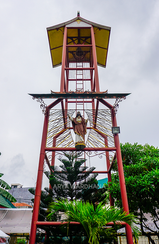 Alih fungsi bangunan rumah tinggal ini menjadi gereja tak terlepas dari terbentuknya Republik Rakyat Tiongkok (RRT) pada 1 Oktober 1949 yang memaksa banyak orang mengungsi. Pemerintah Komunis saat itu mengusir semua misionaris, termasuk imam-imam Jesuit dari Austria dan beberapa suster dari Ordo Fransiskus Misionaris Maria (FMM). Vikaris Apostolik Jakarta waktu itu, Mgr. Adrianus Djajasepoetra SJ kemudian mengutus Pater Wilhelmus Krause Van Eeden SJ untuk mendirikan gereja, asrama dan sekolah untuk orang Hoakiau (Tionghoa perantauan) di sekitar Glodok. Lalu dipilihlah Pater Antonius Loew SJ dari Austria sebagai kepala paroki dan Pater Mathias Leitenbauer SJ sebagai pengelola sekolah yang pertama, yang kemudian dinamakan Sekolah Ricci berbahasa Mandarin pada 1950. Nama Ricci berasal dari Matteo Ricci, seorang misionaris Jesuit yang berhasil memasuki daratan Tiongkok. Mereka juga membuka kursus bahasa Inggris, Jerman dan Mandarin, yang dikenal dengan sebutan Ricci Evening School, dan asrama yang di kelola oleh Pater Tcheng diberi nama Ricci Youth Center. Baru pada tahun 1953, dibelilah sebidang tanah seluas 1 hektar dari kapitan bermarga Tjioe tadi. Tanah ini sudah termasuk bangunan yang menjadi bangunan gereja sekarang. Bahkan salah satu anak Kapitan Tjioe juga menjadi biarawati dan masuk ke Ordo Ursulin.
