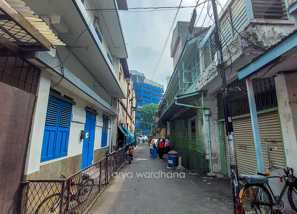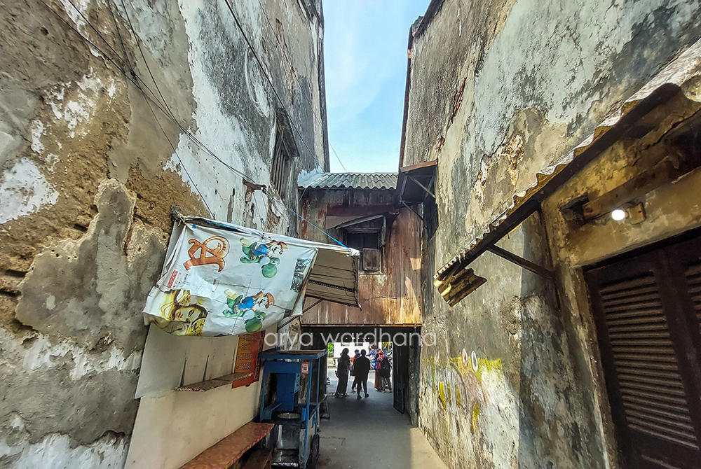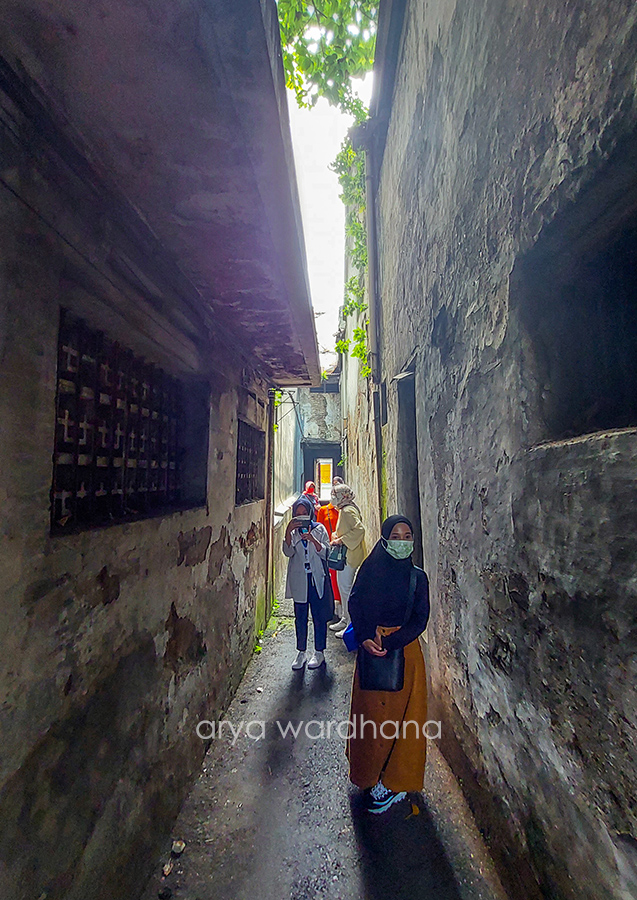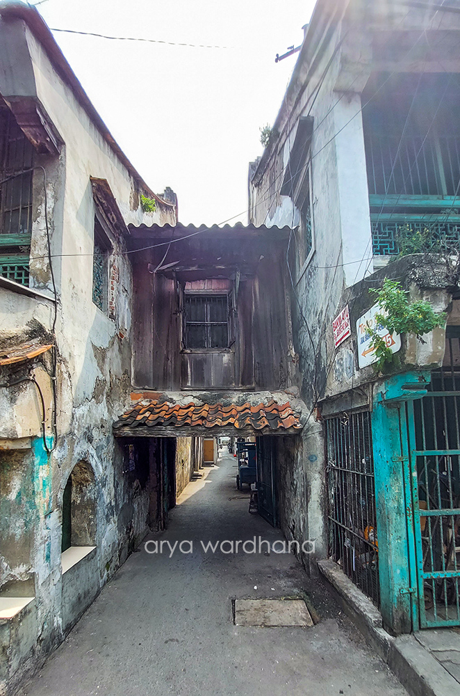 Meski jalanan di sini tampak sempit, tapi justru di sinilah tempat para pedagang Tionghoa berdagang. Bisa dibilang sebagai kawasan kongsi dagang orang-orang Tionghoa. Sayangnya di hari Minggu mereka tutup, biasanya jalanan di dalam kawasan ini sangat ramai.