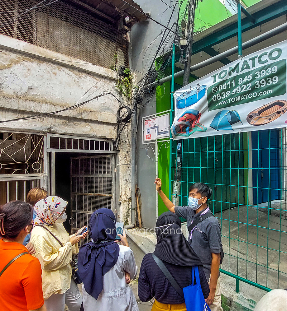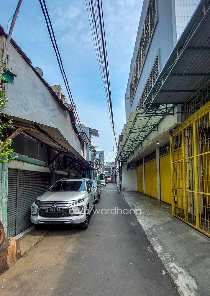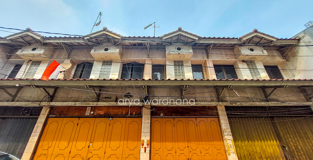 Setelah menjelaskan tentang sejarah Glodok dan Pecinan, kami kemudian menelusuri salah satu jalan di kawasan Asemka. Di sini ada beberapa rumah toko atau yang biasa dikenal dengan ruko. Huans mengatakan bahwa ruko-ruko ini merupakan tempat tinggal yang digunakan oleh orang-orang Tionghoa untuk bergadang. Di lantai bawah biasa digunakan sebagai toko, sedangkan lantai di atasnya sebagai tempat tinggal. Nanti jika anak pemilik toko ini menikah, maka akan dibangun lagi sebuah ruangan di atasnya. Ruko-ruko yang menjulang tinggi ini cukup banyak di kawasan pecinan.