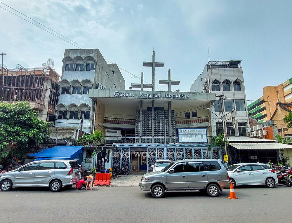 Berlanjut ke bangunan yang sedari tadi menarik saya lihat, Gereja Kristen Indonesia (GKI) Perniagaan atau yang juga disebut dengan nama gereja “Salib Tiga” karena ada tiga salib di atas bangunannya. Gereja ini merupakan salah satu gereja yang tertua di Jakarta. Dulu GKI Perniagaan disebut sebagai gereja Tiong Hoa Kie Tok Kauw Tong. Namun masyarakat kala itu menyebutnya sebagai “gereja Patekoan” karena berada di Jalan Patekoan. Gereja ini dirintis sejak 1868 dan waktu itu dimulai di Jalan Pagerman (dekat Jalan Kopi) oleh seorang penginjil yang bernama Gan Kwee yang berasal dari Amoy (Xianmen), Tiongkok. Kala itu ada 17 orang yang dibaptis oleh seorang pendeta Belanda Ds. de Gaay Fortman, yang kemudian kelak menjadi inti atau cikal bakal “jemaat Patekoan”.
