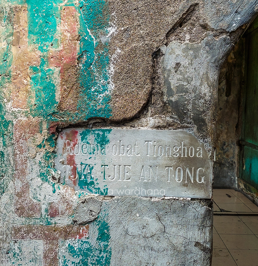 Berjalan ke arah Jalan Perniagaan Barat. Di sini ada banyak bangunan khas Tionghoa yang dulunya berfungsi sebagai toko obat. Salah satunya adalah Roemah Obat Tionghoa Tjia Tjie An Tong. Meski sudah tinggal bangunan saja, tapi kita bisa melihat plakat batu di salah satu sisi bangunan. Oya, An Tong sendiri kalau kata Huans artinya adalah toko obat dalam bahasa Tionghoa. Nah, kalau kita tarik ke belakang lagi ternyata lokasi ini dulunya adalah kawasan pelacuran Jilakeng. Masih ada kaitannya dengan kawasan pelacuran Macao Po yang ada di Jembatan Batu.