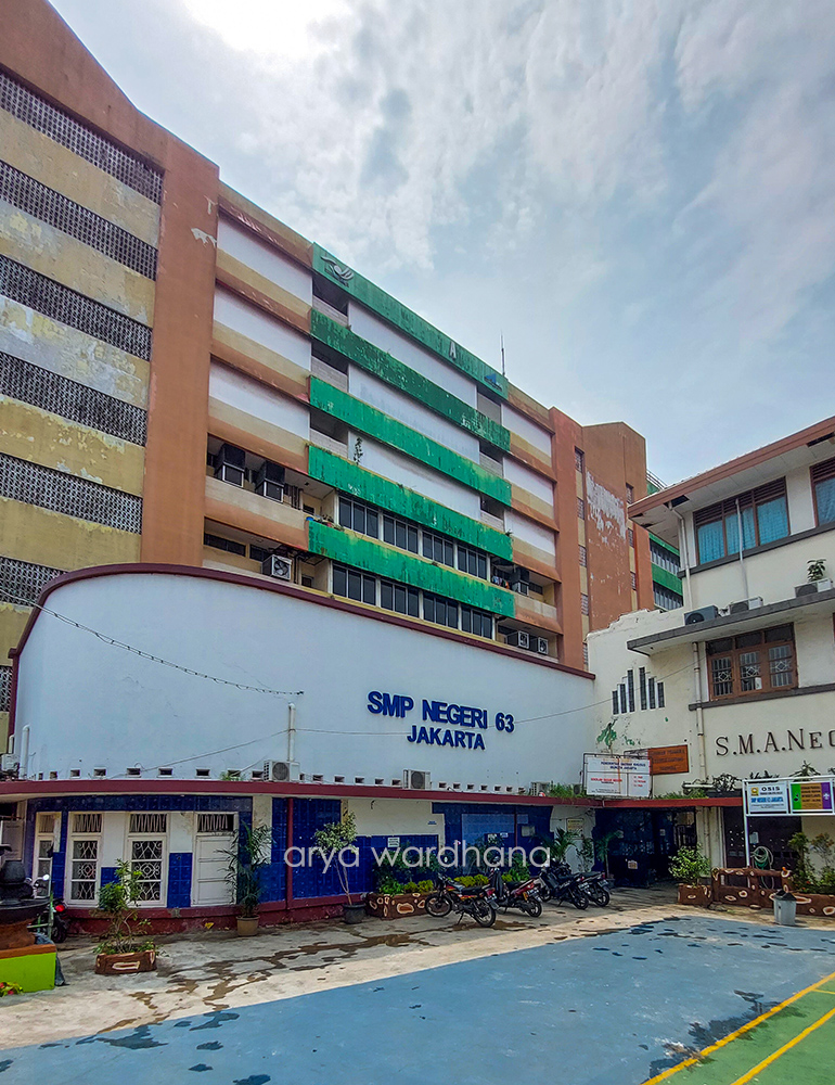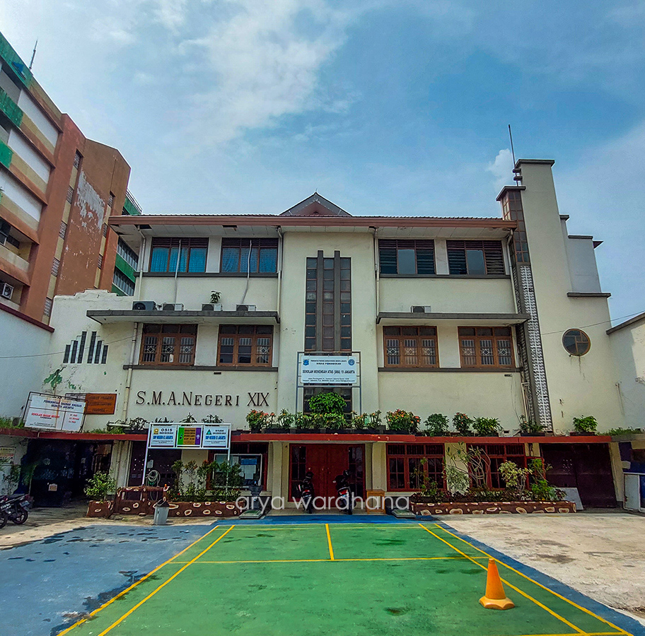 Bangunan yang sering disebut warga sekitar dengan cap-kau yang berarti sembilan belas ini masih mempertahankan keasliannya. Terdapat sebuah plakat di pintu gerbangnya, tertulis “verponding” dengan sejumlah angka. Menandakan bangunan ini telah membayar pajak kepada pemerintah kolonial. Sayangnya kami tidak diijinkan masuk. Tapi katanya bentuk kelasnya seperti sel-sel penjara, dengan teralis besi di bagian atas dinding dan dibiarkan terbuka tapi tetap dilindungi atap genting dan dengan lorong sekolah yang masih ada bau dupa. Sekolah ini akhirnya ditutup pemerintah Indonesia setelah meletusnya G30S dan bangunannya diambil alih oleh negara.