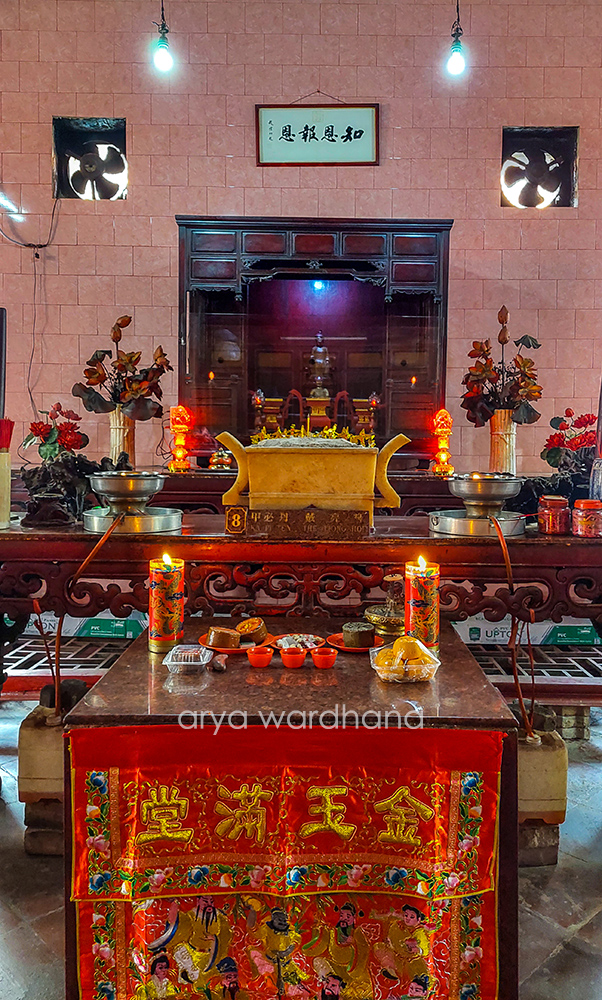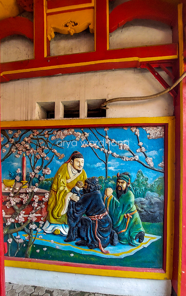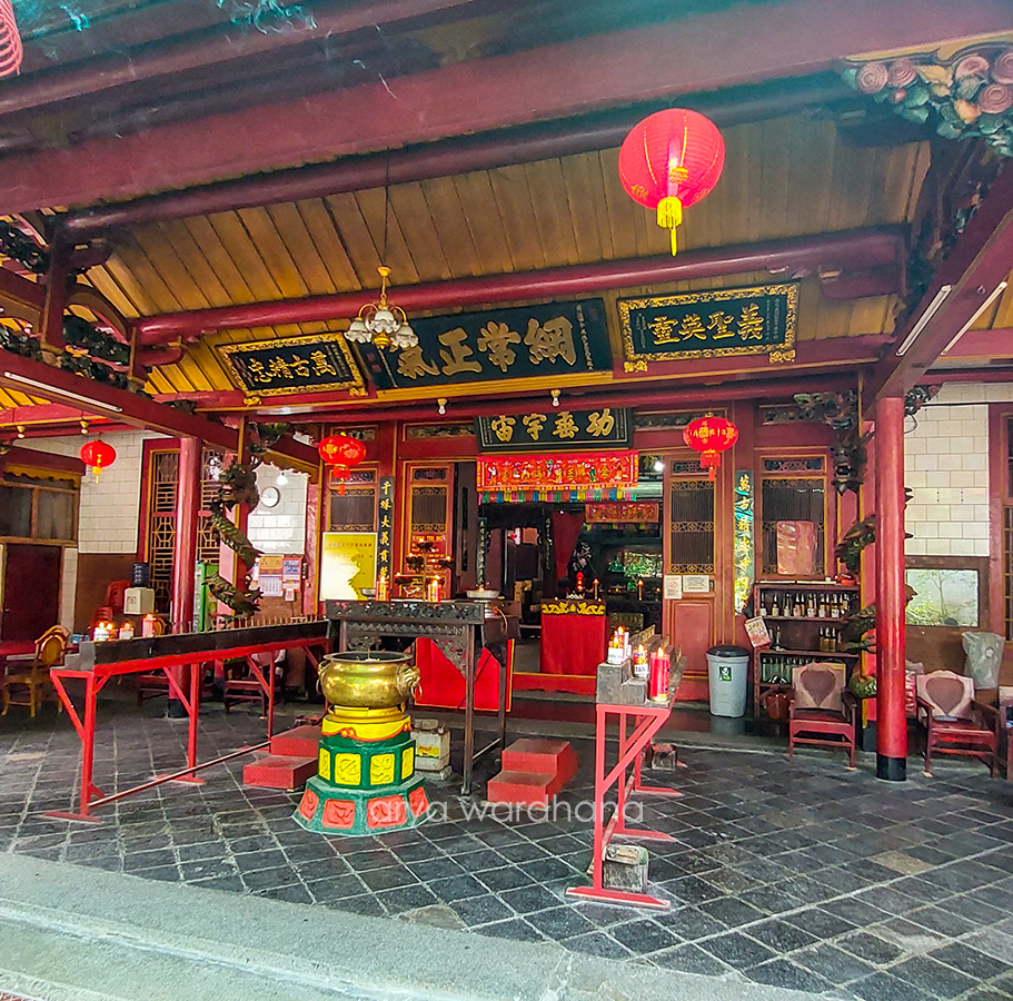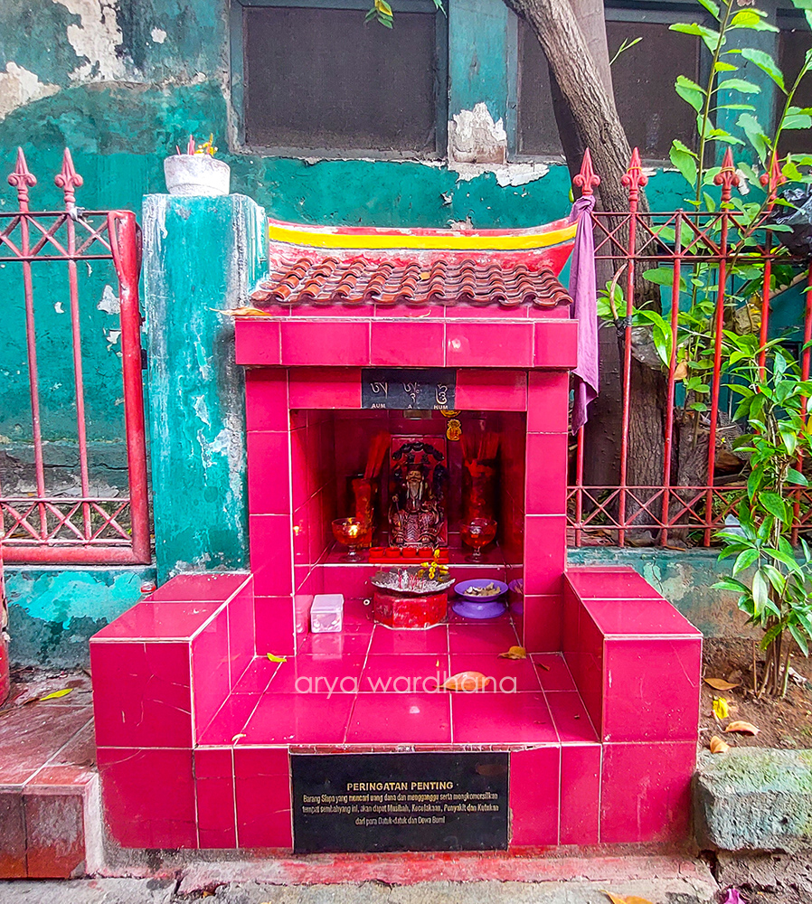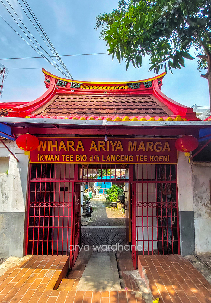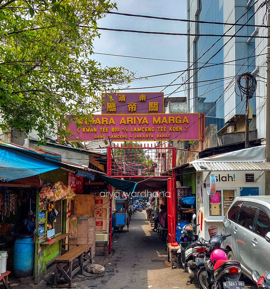 Beralih ke jalan atau gang yang tak jauh dari sekolah. Namanya Gang Lamceng. Di sini ada dua hal ternyata menjadi hidden gems. Pertama adalah Soto Tangkar Dadang Gang Lamceng yang sudah ada sejak 1978, kedua adalah Vihara Ariya Marga atau Nan-jing miao. Kita tidak akan mengunjungi soto tangkarnya, melainkan ke vihara yang ada di dalam gang. Bangunan vihara ini didirikan kira-kira pada 1824 dan dibangun oleh kapitan asal Nanjing, Zhangzhou atau Fujian bernama The Liong Hoei. Vihara atau kelenteng ini merupakan kelenteng serikat bagi orang-orang yang berasal dari Nanjing.