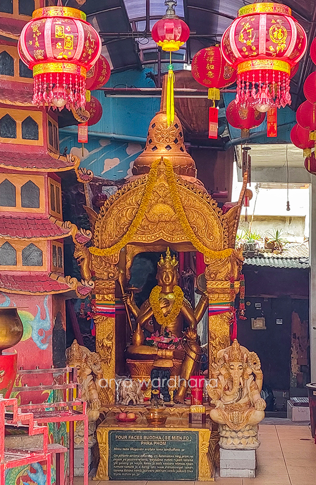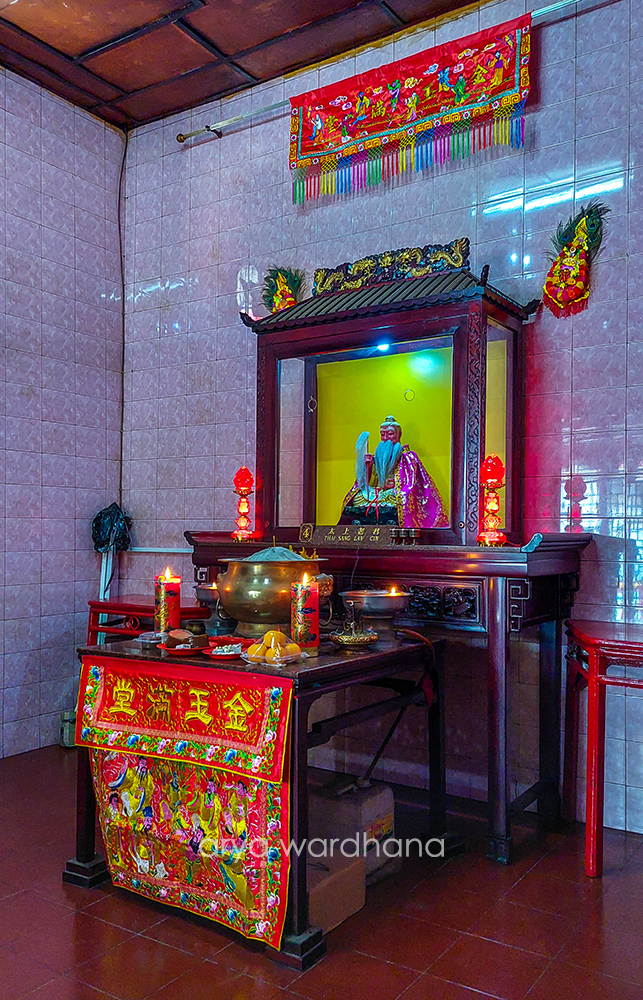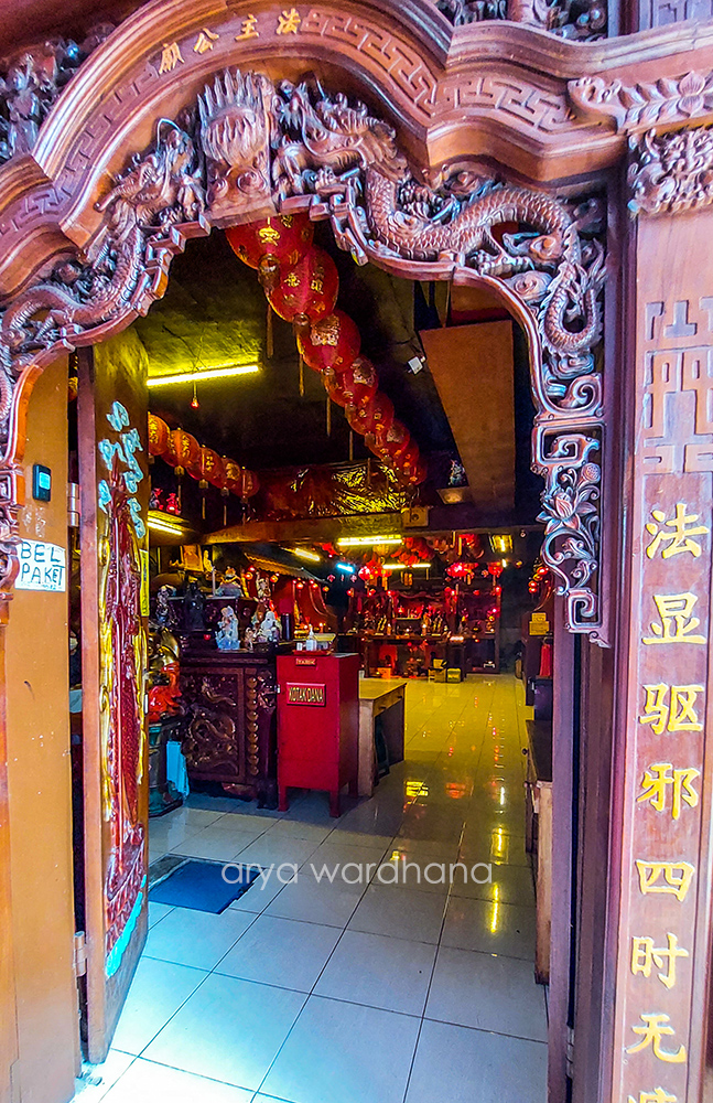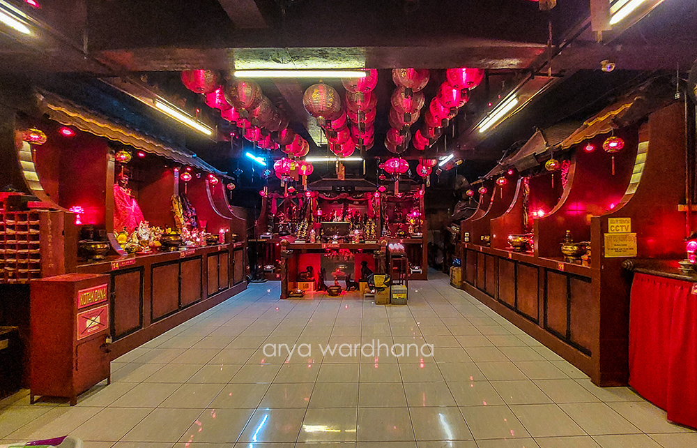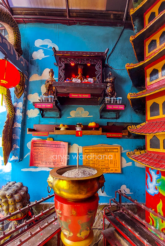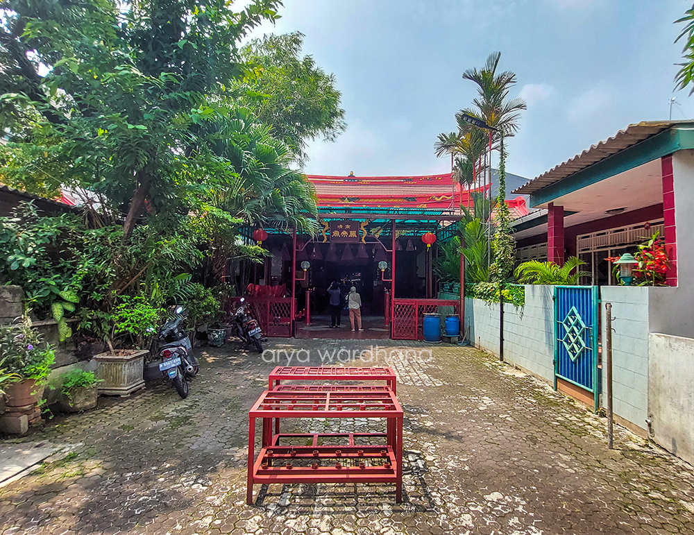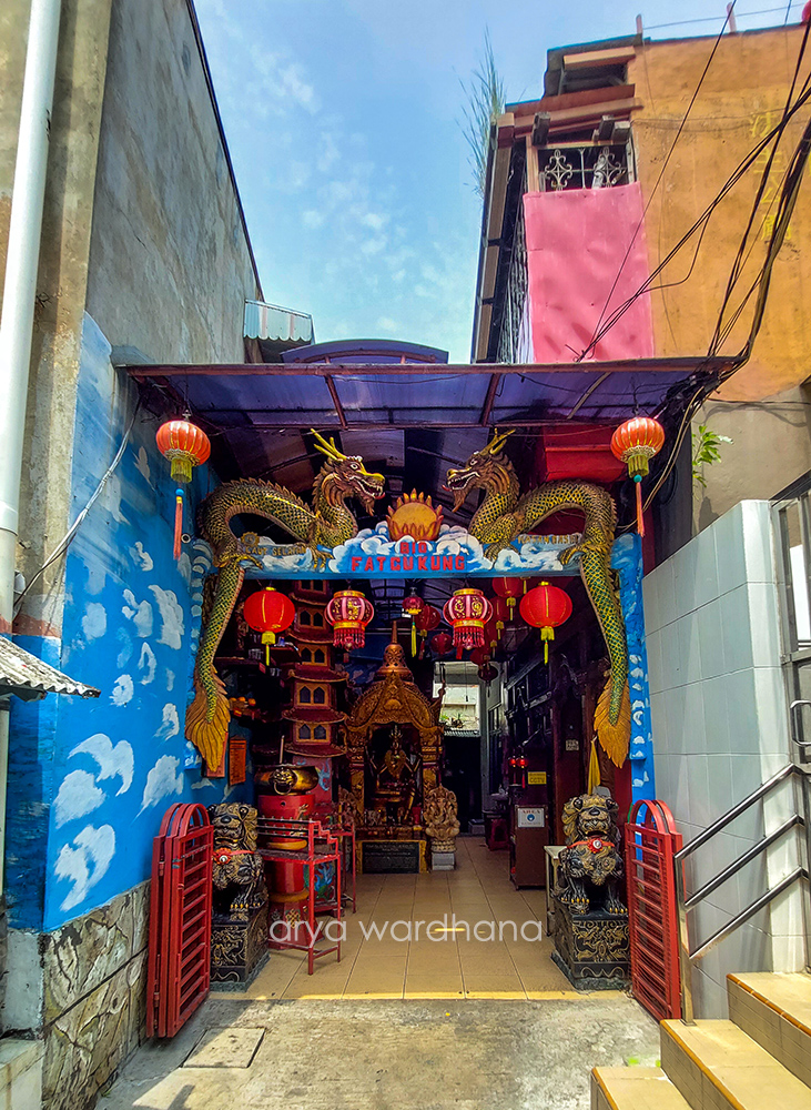 Kelenteng ini masih terbilang muda, bahkan pemiliknya juga masih muda loh. Sayangnya beliau meninggal di 2020 karena terpapar Covid-19. Bangunannya terbilang kecil dan sempit, serta memiliki 2 lantai. Di bagian depannya ada gapura dengan dua ekor naga dan ada patung Buddha dengan muka berjumlah empat. Menurut Huans, ini adalah patung Buddha yang mirip dengan yang ada Thailand. Bisa dibilang yang bersembayang di kelenteng ini berasal dari berbagai aliran. Jadi kita bisa melihat beberapa patung dewa yang memiliki ciri khas yang berbeda satu sama lain.