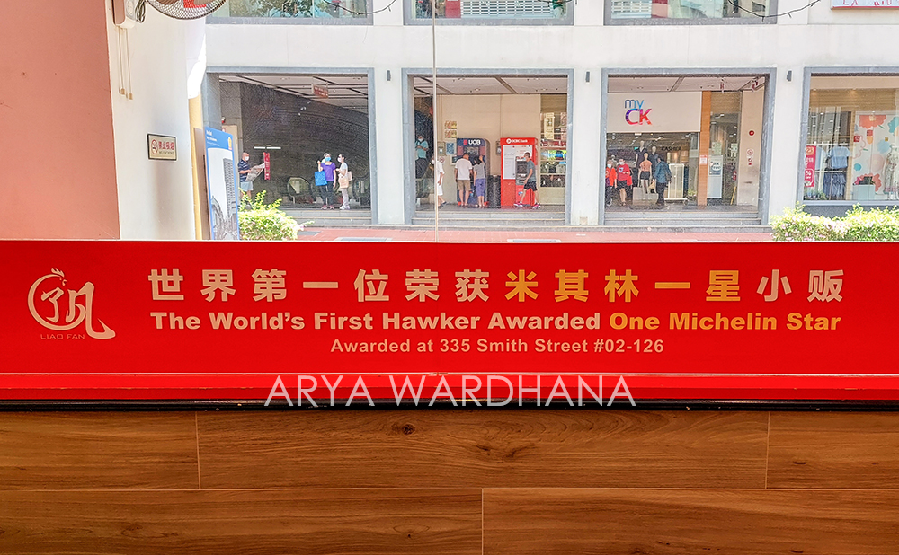 Akhirnya kami sampai di Chinatown setelah transit dua kali di Tanah Merah dan Outram Park. Kami segera check-in di Hotel 1888 Collection dan menyerahkan deposit sebesar SGD100. Kamarnya bisa dibilang cukup untuk kami berdua. Ya meski tidak terlalu besar, tapi bersih dan nyaman. Toh kami hanya pakai untuk istirahat saja. Tak lama kok terasa lapar, kami lalu berkeliling sekitar hotel dan menemukan Liao Fan Hawker Chan di Smith Street, yang berada di belakang hotel.