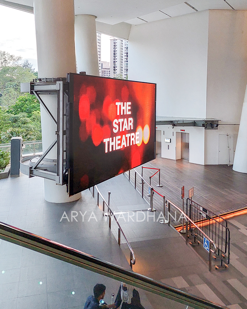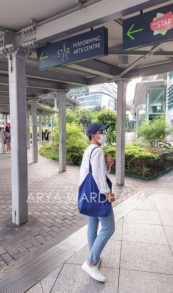 Sebelum masuk ke area konser, kami makan dulu di The Star Vista. Saya membeli pork belly rice, sedangkan teman saya membeli fishball noodles. Jam 6 sore, antrean mulai panjang. Tapi karena nanti duduknya sesuai nomor di tiket, jadi saya tidak terlalu terburu-buru ikut mengantre. Malah duduk-duduk dulu sambil menikmati angin sore di area balkon The Star Vista. Melihat antrean penonton yang mulai masuk ke dalam, akhirnya saya berpamitan dengan teman saya untuk ikut masuk. Ia lalu kembali ke hotel kami.