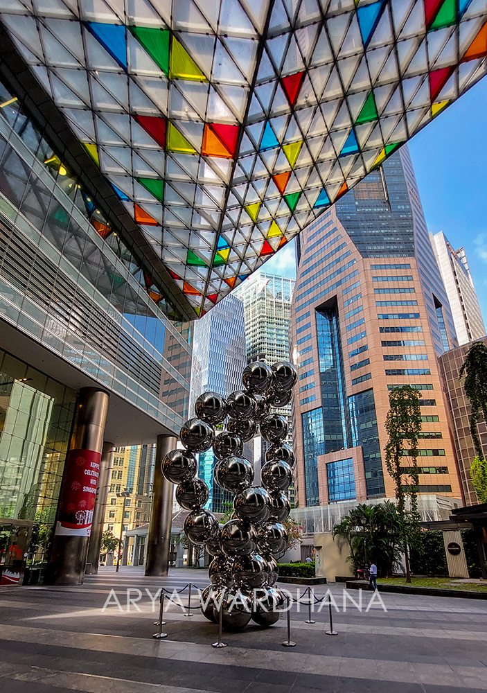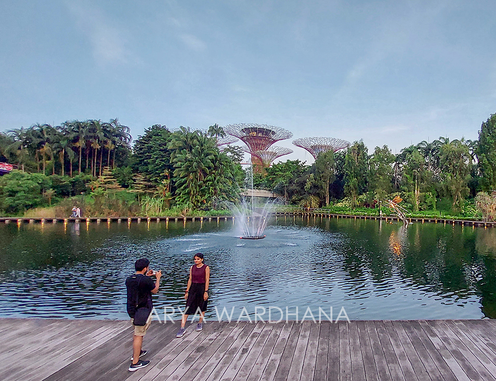 Setelah membeli egg tart, kami segera naik MRT menuju ke Marina Bay. Kami sempat salah turun di stasiun MRT Marina Bay. Memang benar tujuan kami kami Ke Marina Bay, tapi ternyata jaraknya cukup jauh jika mau ke Gardens by the Bay. Akhirnya kami naik MRT lagi dan turun di stasiun MRT Bayfront. Kalian tinggal jalan saja melalui terowongan dan keluar di dekat Bayfront Plaza, lalu tinggal menyeberang saja melewati Dragonfly Bridge. Cerita saya di Gardens by the Bay bisa kalian baca di sini.