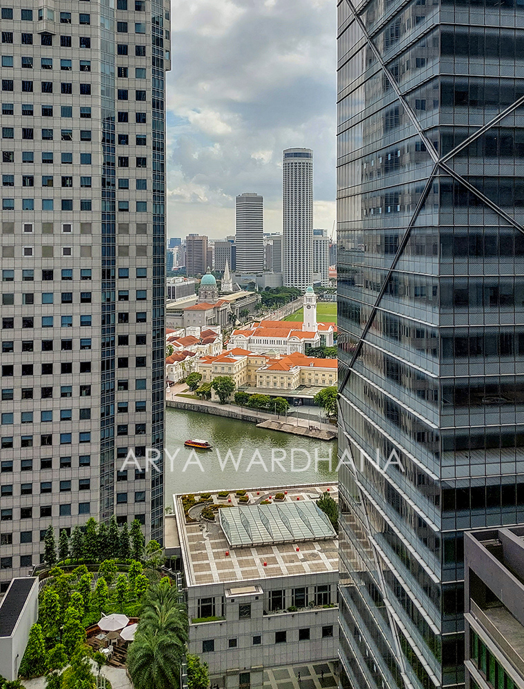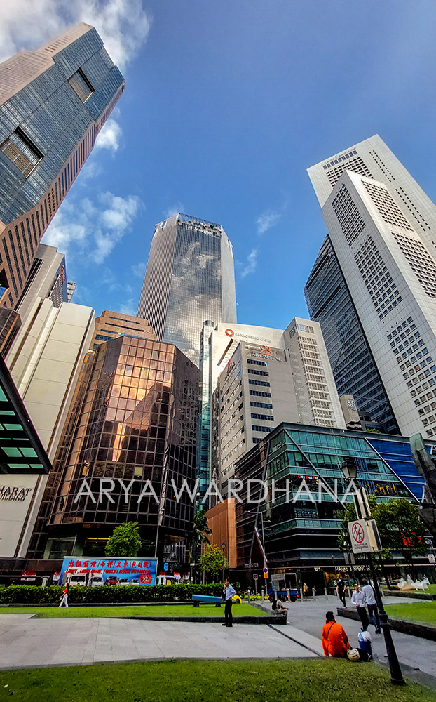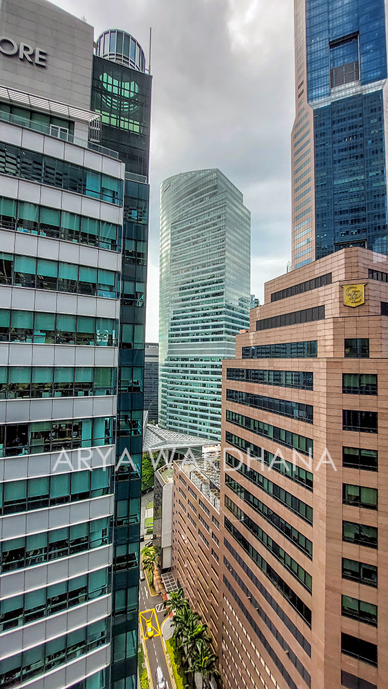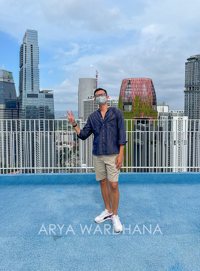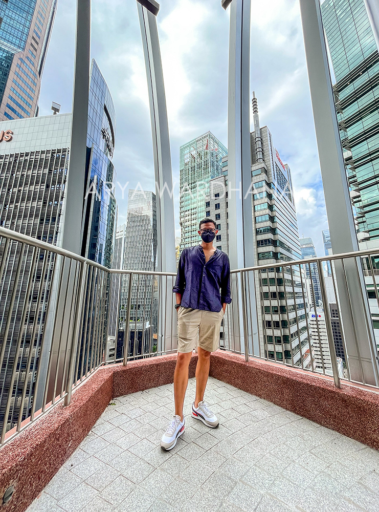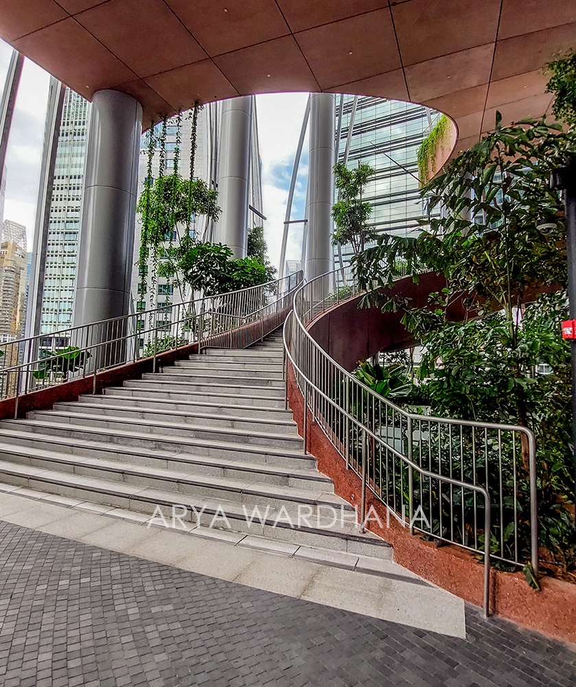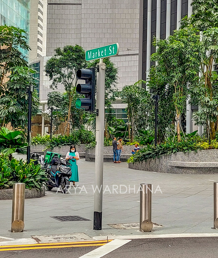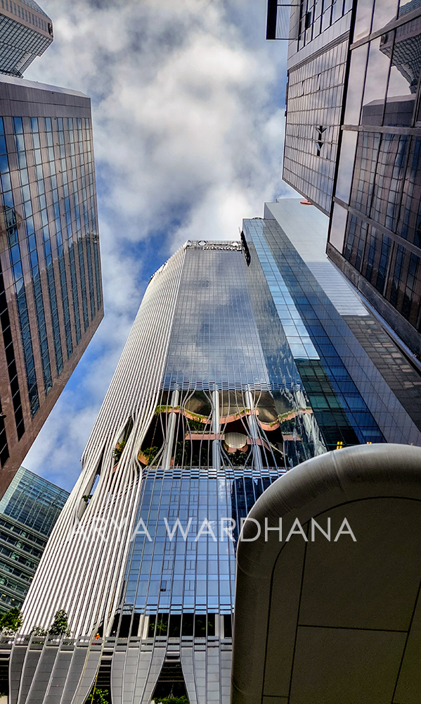 Setelah makan kami menuju ke kawasan Central Business District. Di sini kami bukan mau bekerja ya, tapi kami mau menuju ke CapitaSpring, pencakar langit terbaru di Singapura. Nah, kenapa ke sini? Karena katanya di sini tempat terbaik untuk melihat pemandangan kota dari ketinggian. Karena tingginya mencapai 280 meter dan menjadi gedung yang tertinggi kedua di Singapura, bersamaan dengan One Raffles Place, United Overseas Bank Plaza One, dan Republic Plaza. Lokasinya ada di Market Street dan untuk menuju ke sini, kalian bisa keluar di stasiun MRT Raffles Place (melalui Exit A).