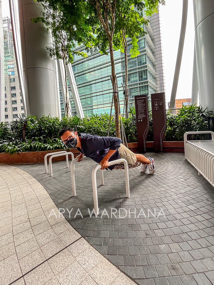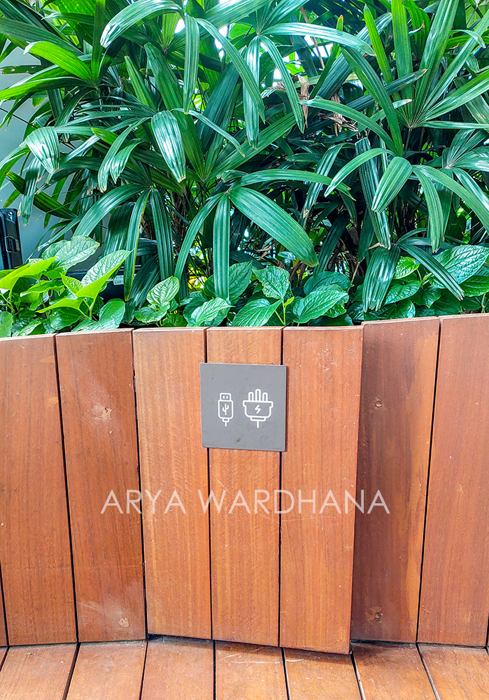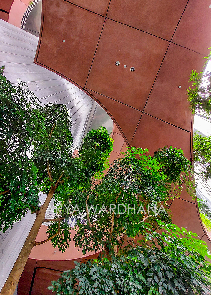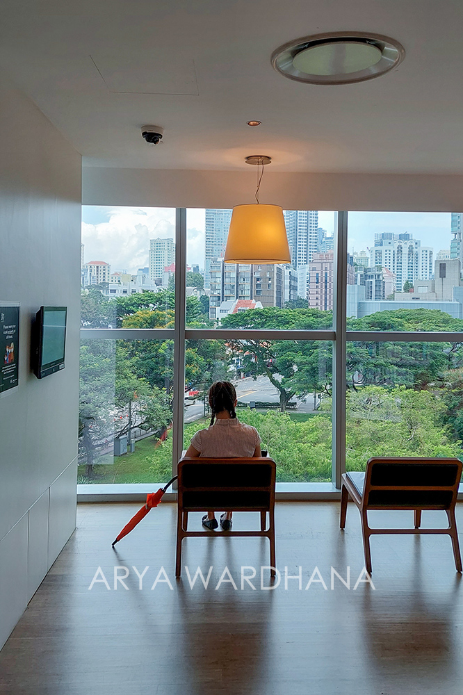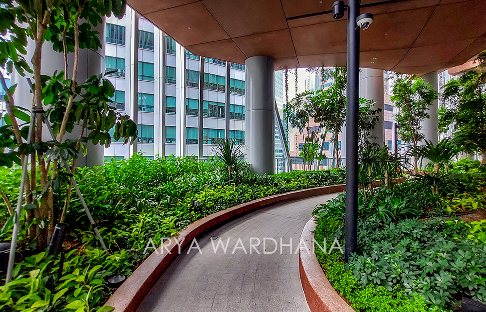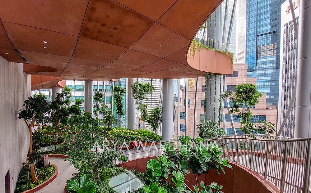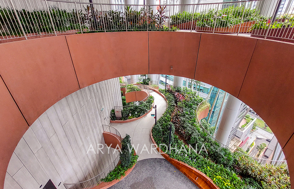 Oya, tadi lupa ya bilang caranya menuju ke Sky Garden dan Green Oasis. Sepertinya yang saya bilang tadi, dua lokasi ini gratis dan masuknya melalui lobi CapitaSpring, Kallian cukup menuju ke sebuah lift yang berada di sebelah kiri resepsionis (sangat mencolok karena ada videotron yang tertempel di dinding luar). Nanti kalian bisa langsung pilih mau ke lantai berapa. Tapi di sini tidak semua lantai ya, karena tombolnya sudah ditentukan. Jam bukanya ada dua sesi, pertama jam 8.30-10.30 pagi dan kedua jam 2.30 siang sampai 6 sore. Untuk slot jam 10.30 pagi sampai 2.30 siang hanya diperuntukan untuk para penyewa CapitaSpring, penghuni apartemen Citadine Raffles Place, dan pengunjung restoran. Kalau selepas jam 6 sore hanya dikhususkan untuk pengunjung restoran saja.