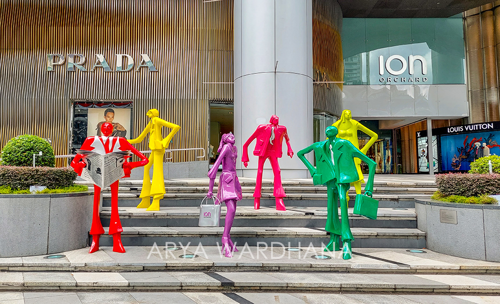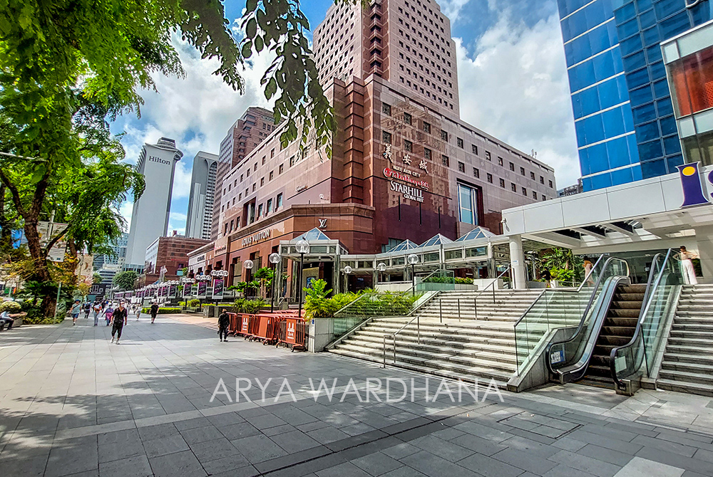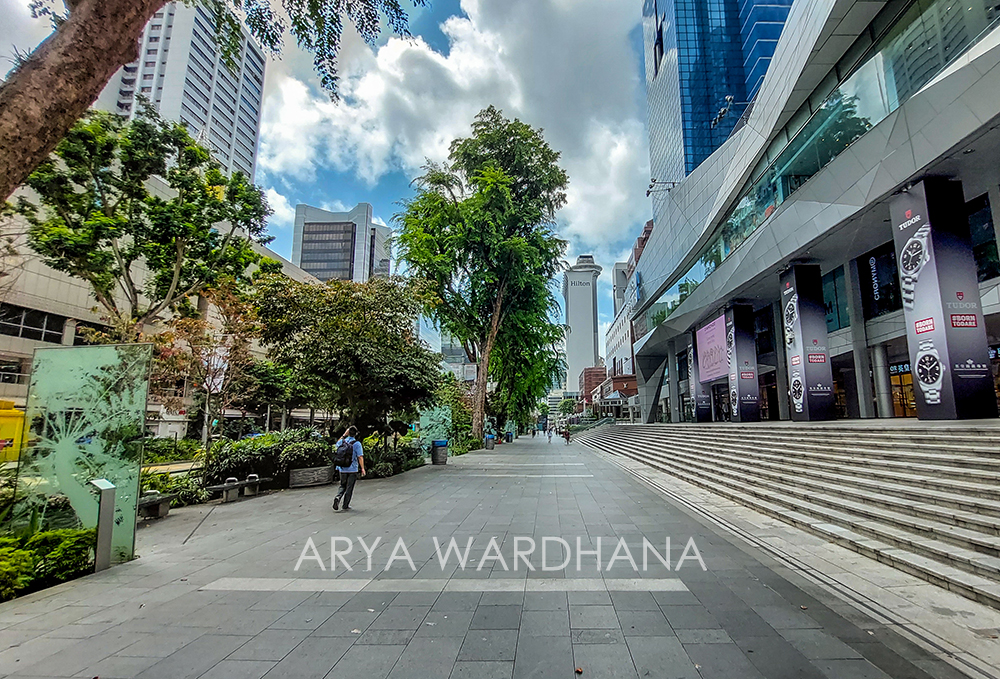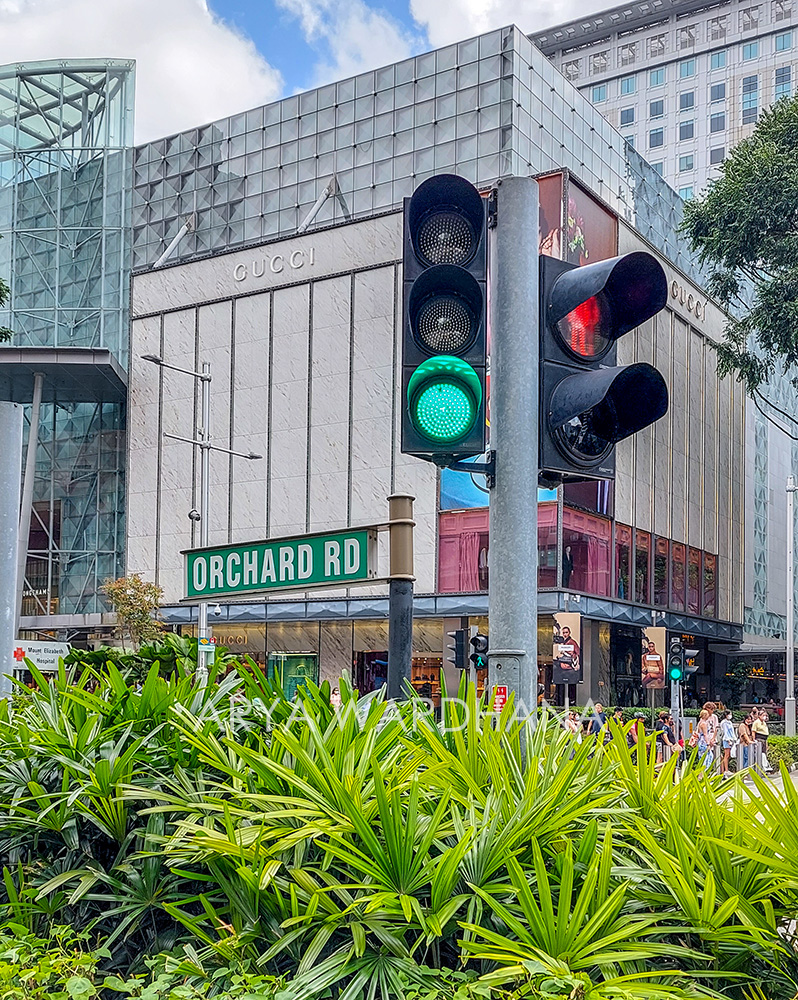 Kami kemudian melanjutkan perjalanan dengan naik MRT untuk menuju ke Orchard Road. Di sini kami turun di stasiun MRT Orchard yang tersambung dengan mall ION Orchard dan sampailah kami di jalan yang paling dikenal di Singapura, Orchard Road. Jalanan yang membentang sepanjang 2,2 km ini dulunya hanya jalan setapak. Tepatnya sekitar 150 tahun lalu, jalan ini adalah jalan kecil di antara perkebunan buah, pala, dan merica. Nama jalan ini memang mewakili kondisi kawasan ini di pertengahan 1800an, yang berarti kebun buah. Baru pada 1830an, jalan ini mulai dibangun di antara perkebunan gambir, lada, pala dan buah-buahan. Seiring berjalannya waktu, mulai muncul pemukiman, tempat ibadah, hingga pemakaman, seperti bekas pemakaman Yahudi yang sekarang menjadi stasiun MRT Dhoby Ghaut dan bekas pemakaman Tionghoa yang sekarang menjadi Hotel Meritus Mandarin dan Ngee Ann City. Salah satu rumah yang cukup dikenal adalah Hurricane House milik Raja Siam yang berdiri pada 1890an, kini menjadi Kedutaan Kerajaan Thailand.