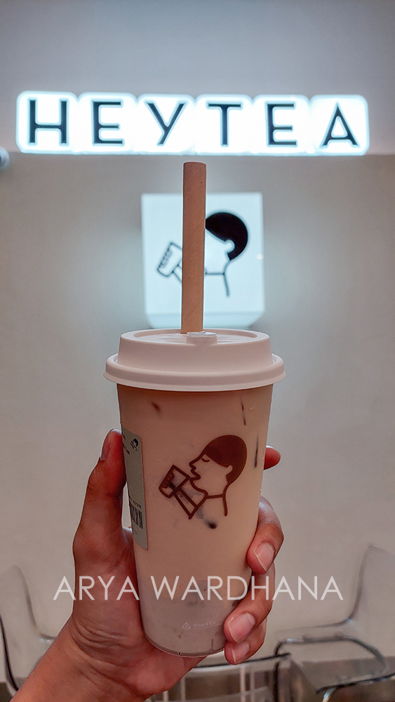 Puas berkeliling di dalam perpustakaan, sekaligus ngadem, kami pun menuju ke salah satu spot menarik di mall Orchard Gateway, namanya The Tube Viewing Gallery. Jembatan penghubung di lantai 3 pusat perbelanjaan Orchard Gateway ini terhubung dengan Orchard Gateway@Emerald yang ada di seberangnya. Jembatan ini dikelilingi dinding transparan dan lantai reflektif, dengan bentuk simetris dan unik. Tentunya sayang jika tidak berfoto di sini. Jembatan penghubung ini baru dibuka bersamaan dengan dibukanya mall Orchard Gateway pada 26 April 2014. Buka dari jam 10.30 pagi sampai 8.30 malam. Jika malam hari akan semakin bagus, karena diberi penerangan lampu warna-warni. Karena sudah siang, perut kami pun keroncongan dan kami berhenti sejenak di Hey Tea untuk membeli Taro Boba Milk Tea untuk mengganjal isi perut.