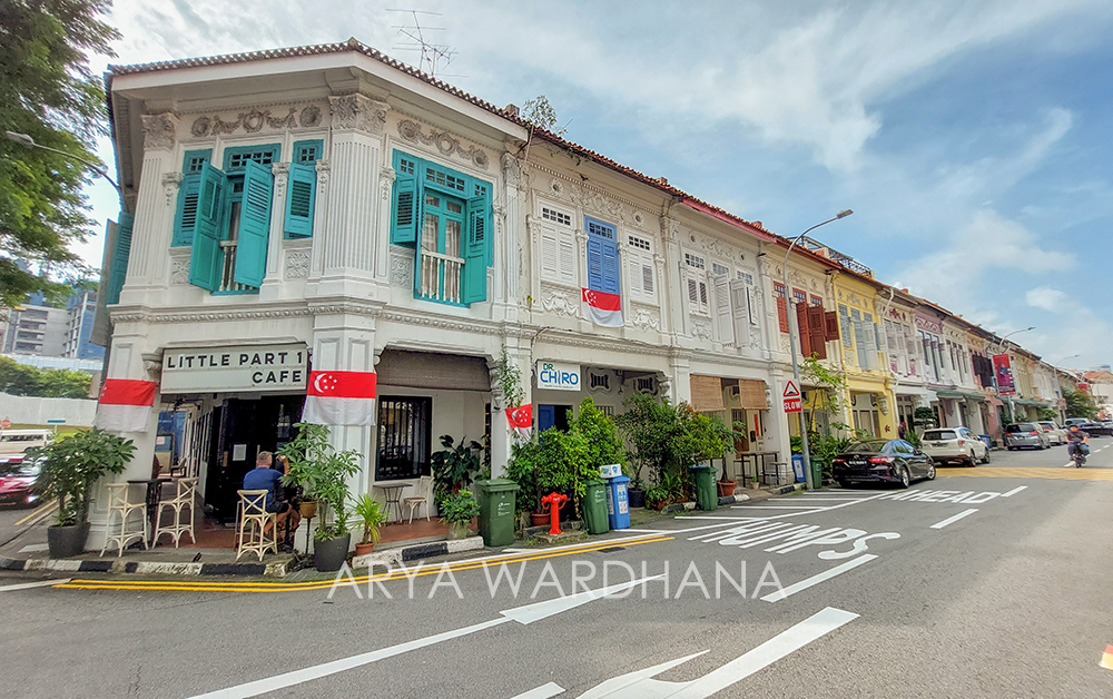 Walau kebablasan, kami justru menemukan satu lokasi yang menarik di Blair Road, tak jauh dari tempat kami turun. Di sini adalah lokasi Blair Plain Conservation Area, kawasan konservasi ini dikukuhkan pada 25 Oktober 1991 untuk melestarikan rumah toko (shophouse) dan rumah teras berlantai dua dan tiga. Dulu daerah ini dikembangkan sebelum akhir abad ke-19 dan namanya diambil dari nama John Blair, seorang perwira senior di Perusahaan Dermaga Tanjong Pagar, yang memiliki tanah di daerah tersebut dan memiliki rumah besar di dekat pelabuhan. Bangunan di sini dibangun dengan gaya arsitektur yang klasik. Rumah teras mencerminkan campuran eklektik elemen desain Cina, Melayu, dan Eropa. Sedangkan rumah toko di sini dapat dikenali dari desain arsitekturnya yang sederhana, dengan bukaan jendela tunggal pada fasad depan lantai dua.