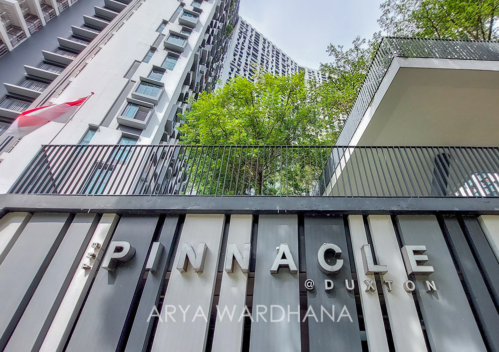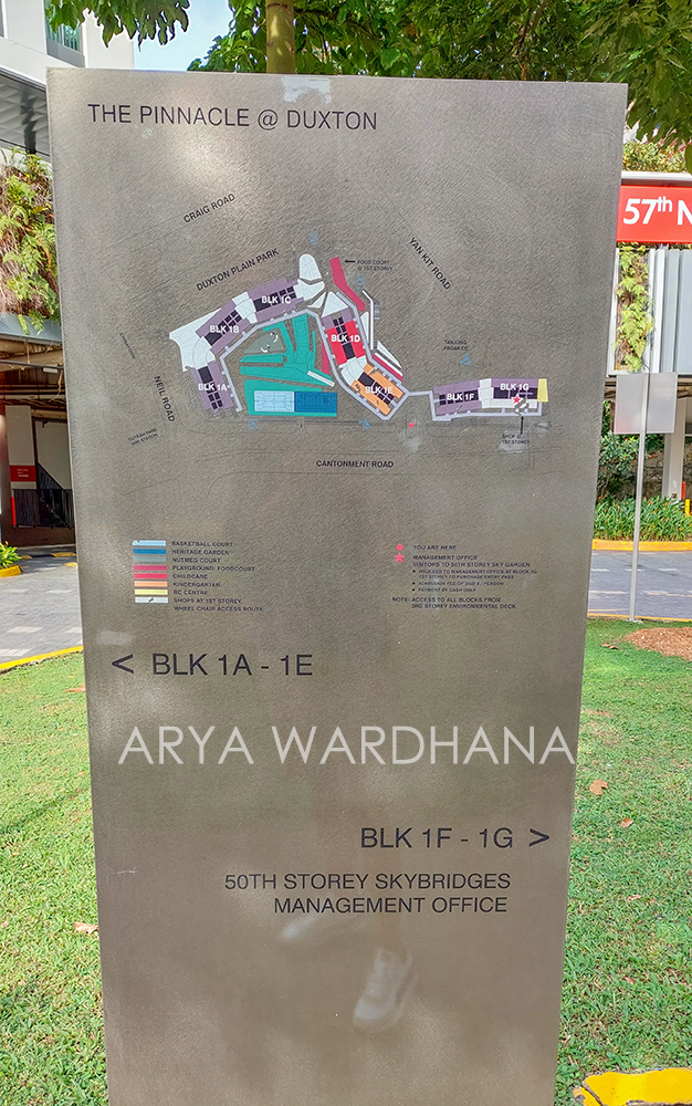 Setelah enam menit berjalan kaki, kami sampai di Pinnacle@Duxton. Pinnacle@Duxton adalah perumahan 50 lantai dengan 7 tower yang masing-masing tower dihubungkan dengan dua sky garden terpanjang yang pernah dibangun di atas gedung pencakar langit dengan masing-masing panjangnya 500 meter. Bangunan yang selesai dibangun pada 2009 ini juga dinobatkan sebagai pembangunan tempat tinggal publik tertinggi di dunia. Sebenarnya ada dua sky garden di sini, lantai 50 yang terbuka umum dan penghuni, dan lantai 26 yang dikhususkan untuk para penghuni saja.