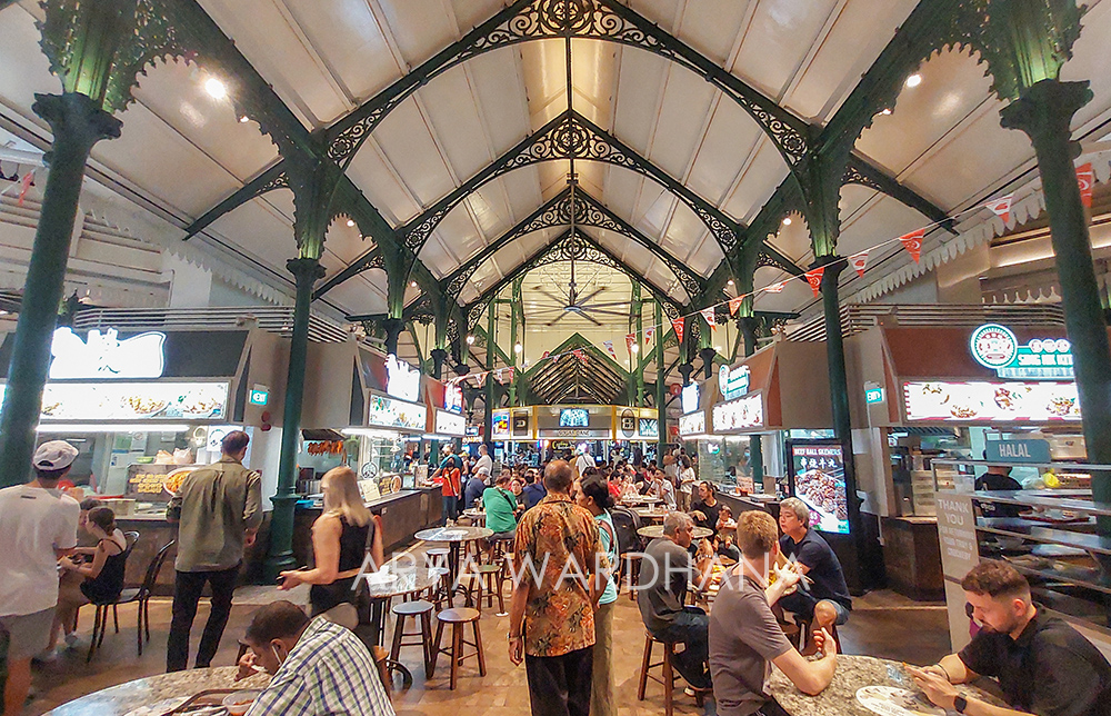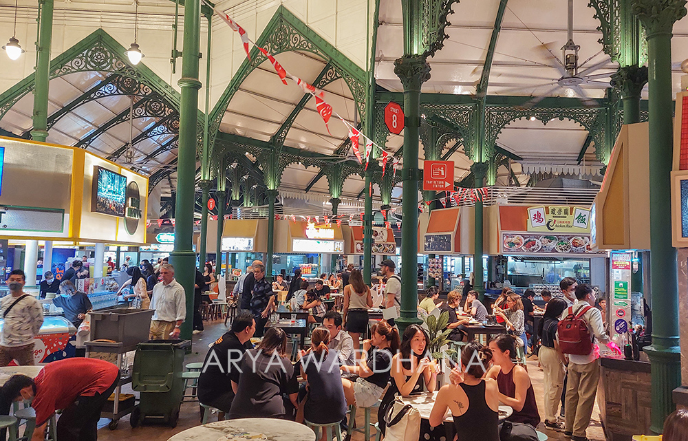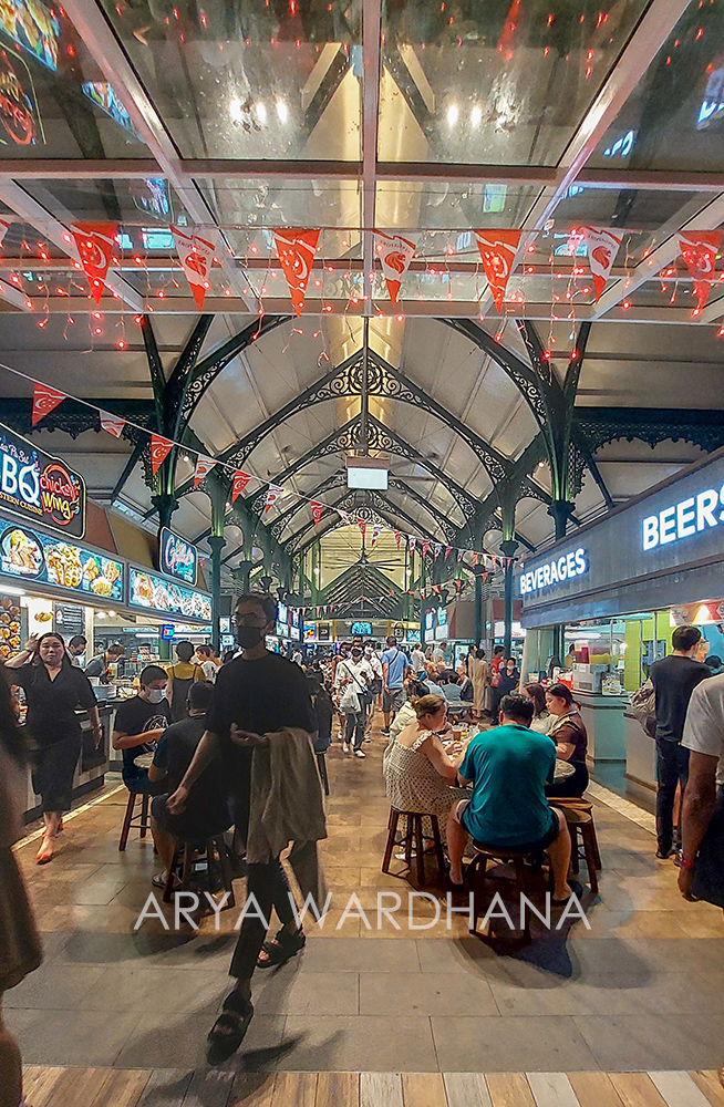 Di CapitaSpring ada satu lokasi yang tidak sempat kami datangi, padahal pengen sekali mencoba membeli makanan murah di sini. Ya bayangkan saja, lokasinya di CBD Singapore dan pastinya banyak makanan yang mahal. Namanya Market Street Hawker Centre. Lokasinya di lantai 2 dan 3 di gedung yang sama dan menempati 2 lantai. Pintu masuknya menyelip di persimpangan Market Street dan Chulia Street, tepat di seberang UOB Plaza. Ada sekitar 56 penjual makanan di sini. Kenapa penasaran, karena kalau saya lihat-lihat di beberapa video ulasan, tempatnya bersih sekali dan cenderung lebih “mewah” ketimbang pusat kuliner lainnya di Singapura. Bahkan harga makanannya masih terbilang murah.