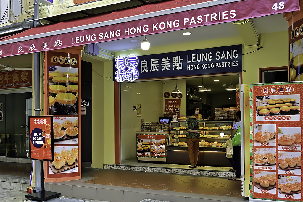 Leung Sang Hong Kong Pastries menawarkan dua jenis egg tart, satu dengan gaya Hong Kong dan satu lagi dengan gaya Western. Egg tart gaya Hong Kong memiliki lapisan kulit pastry yang berlapis dan renyah, sedangkan kulit pastry gaya Western lebih mirip biskuit yang padat. Selain egg tart, toko kue ini juga menjual berbagai kue lainnya, seperti roasted chicken pastry, mushroom chicken pie, Wife’s Delight pastry, dan egg yolk lotus seed pastry. Kami lalu membeli Hong Kong Egg Tart, BBQ Chicken Pie, dan Lotus Paste with Salted Egg Puff. Untuk harganya hampir semua sama, yaitu SGD2.20 per buah.