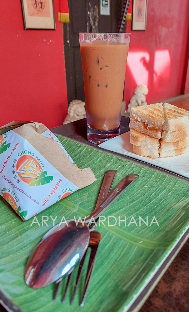 Di Nanyang Old Coffee ini mereka menggunakan metode pembuatan kopi tradisional. Biji kopi Nanyang disangrai dengan gula, digiling lalu disaring melalui alat yang menyerupai kaus kaki. Biasanya kopi akan disajikan dalam cangkir porselen. Nanyang Old Coffee pernah memenangkan kompetisi kopi tradisional Singapura dan dinominasikan sebagai Duta Besar Kopi Nanyang Singapura pada 2013. Selain menyajikan kopi, Nanyang Old Coffee juga menyediakan menu seperti telur setengah matang, dan kaya butter toast, serta kue-kue buatan sendiri. Atau kalau ingin kenyang, bisa memesan Nyonya nasi lemak, bak kut teh, kueh khas seperti pia (Chinese pastry), dan juga chee cheong fun. Karena tidak mau terlalu kenyang, saya dan teman saya memesan ice kopi O, kaya butter toast, dan Nyonya nasi lemak. Untuk rasanya saya bilang sih cukup lumayan ya. Setidaknya untuk mengisi perut di pagi hari.