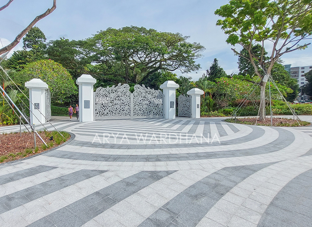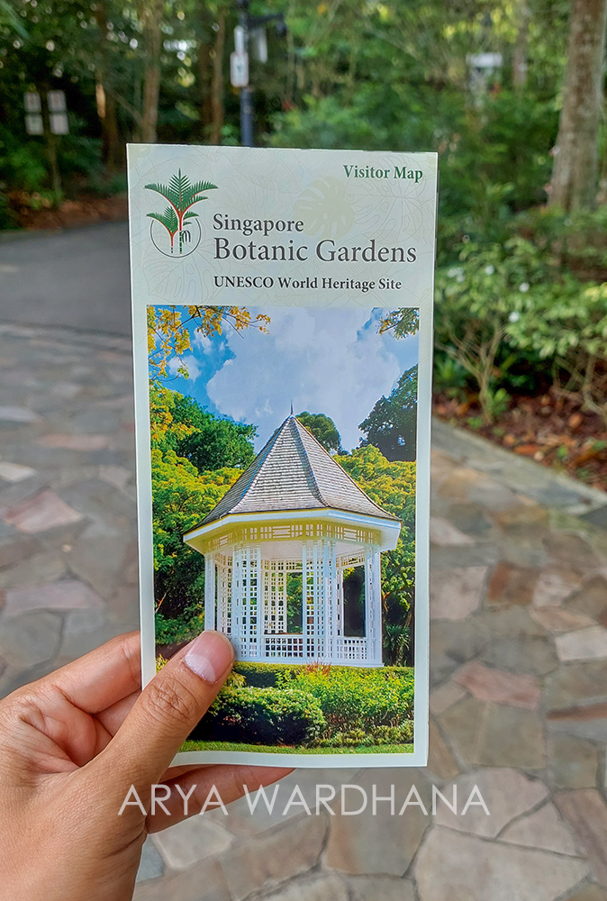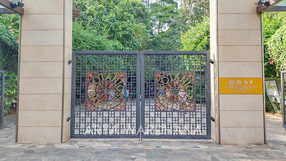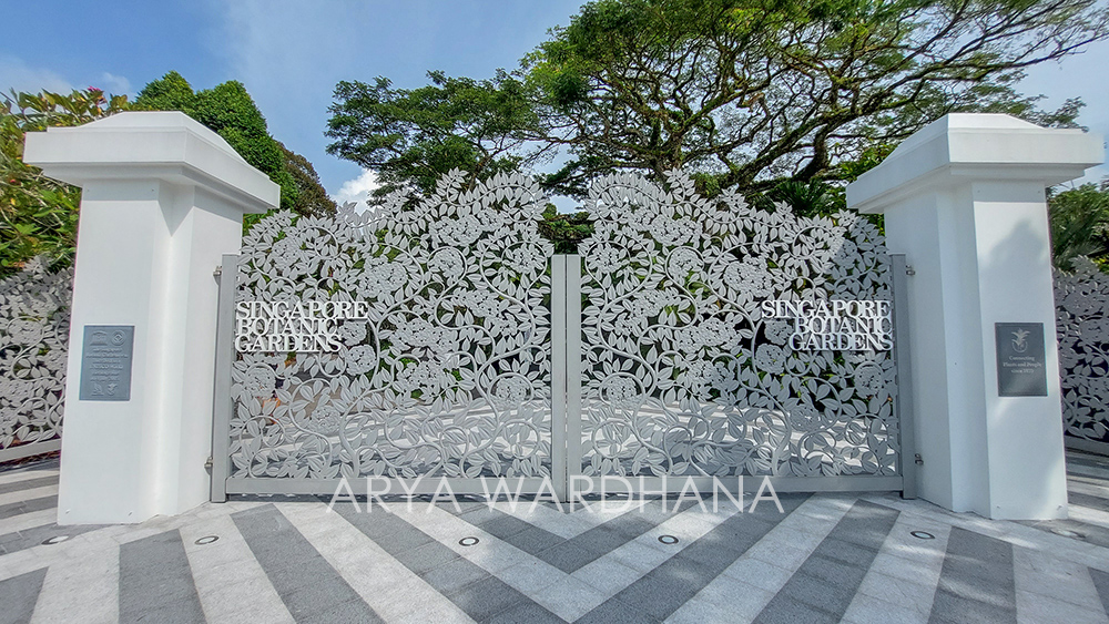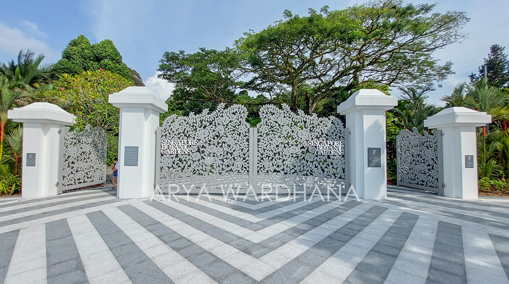 Kami lalu ke stasiun MRT Chinatown untuk menuju ke stasiun MRT Botanic Gardens. Saat keluar dari stasiun, kami langsung menemukan pintu masuk Singapore Botanic Gardens. Pintu masuk ini adalah Bukit Timah Gate yang dekat dengan stasiun MRT Botanic Gardens. Sebenarnya ada banyak pintu masuk, tapi yang paling dikenal adalah pintu masuk kami tadi (karena dekat dengan stasiun MRT) dan Tanglin Gate yang merupakan pintu masuk utama. Untuk masuk ke kawasan Singapore Botanic Gardens atau SBG ini tidak dipungut biaya apapun. Tapi untuk masuk ke dalam beberapa taman, kalian harus membayar tiket masuk.