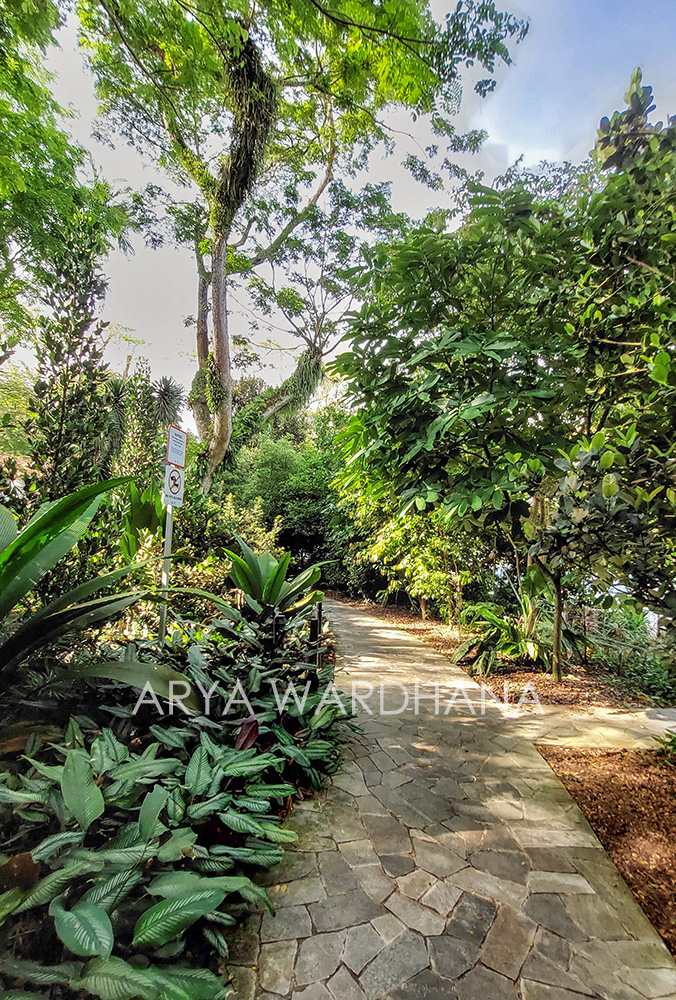 Lalu ada Burkill Hall, sebuah bungalo perkebunan kolonial yang dibangun pada 1886. Dulu merupakan bekas rumah direktur dan dinamai untuk menghormati satu-satunya pasangan ayah dan anak yang memegang jabatan direktur Singapore Botanic Gardens, Isaac dan Humphrey Burkill. Waktu saya ke sini, di lantai bawahnya sedang ada acara dan memang disewakan untuk umum. Sayang sekali saya tidak bisa masuk dan melihat ke dalam. Selain itu ada juga taman dengan tema tertentu, seperti Ginger Garden, Healing Garden, Fragrant Garden, Foliage Garden, dan Evolution Garden. Kebanyakan pengunjungnya adalah warga lokal dan biasanya mereka tak hanya berjalan-jalan atau sekadar piknik, ada juga yang berolahraga. Saya jadi tertarik untuk lari di kawasan kebun raya ini. Suatu saat mau ke sini lagi untuk lari pagi dan dilanjutkan dengan berkeliling taman. Oya, di sini juga ada beberapa tempat makan, seperti food court, cafe, dan resto. Jadi tidak perlu khawatir kalau lapar selama di dalam kawasan kebun raya.