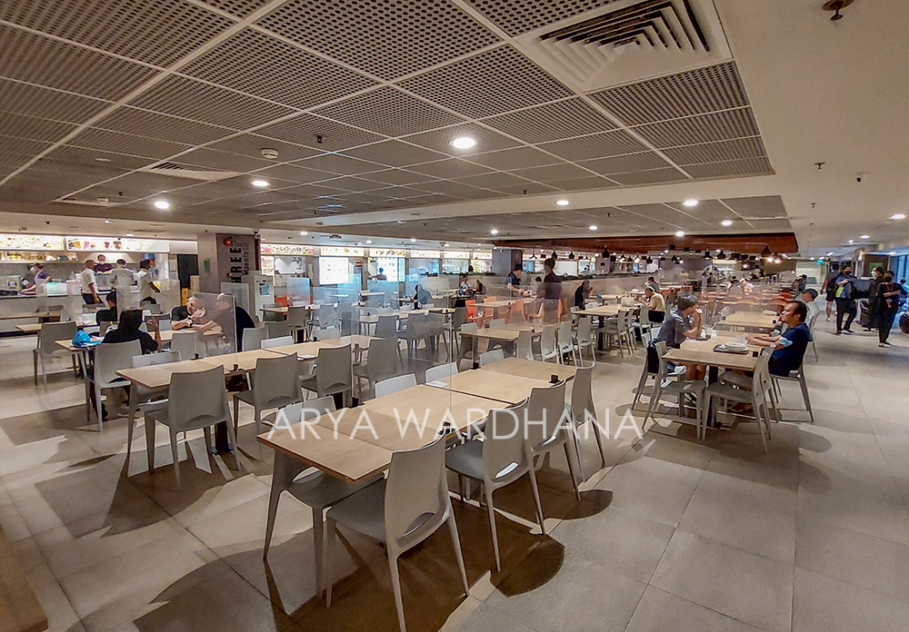 Menu yang ditawarkan masing-masing kedai sangat beragam, mulai dari babi panggang, bakso ikan, nasi ayam, makanan Jepang, nasi campur, dessert dan berbagai minuman. Tenang saja kalau makanannya halal akan ada tandanya kok, karena karyawan di sini juga beragam. Saya sih pesannya Fried Rice with Porkshop & Eggs seharga SGD6.80 dan beli minuman susu kedelai dengan harga SGD1.20. Murah dan porsinya juga banyak. Wah, kayaknya kalau nanti transit via Singapura lebih baik makan dulu ke sini. Kalau jam bukanya, setahu saya dari jam 7 pagi sampai 10 malam. Selain di T1, kantin karyawan juga ada di T2.